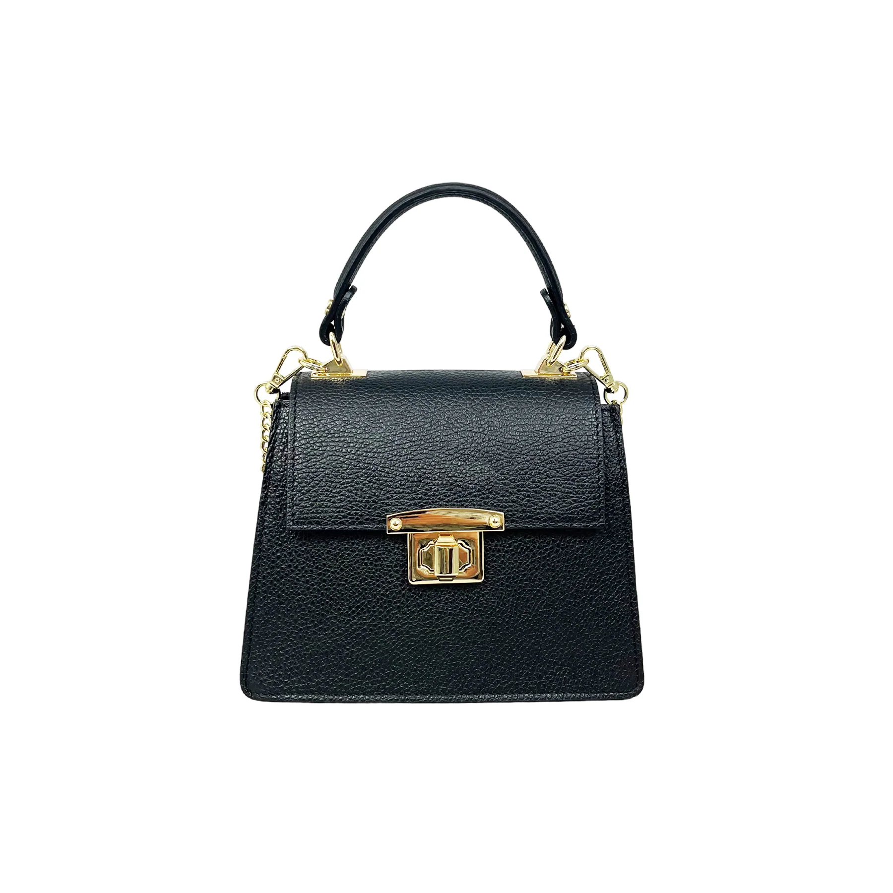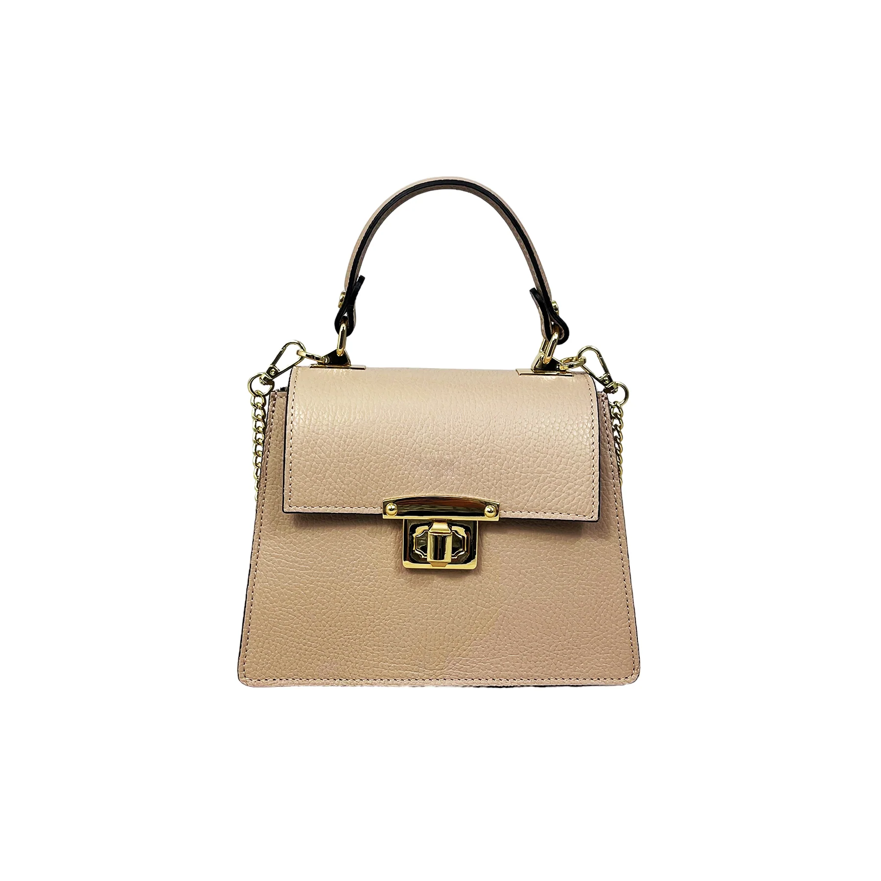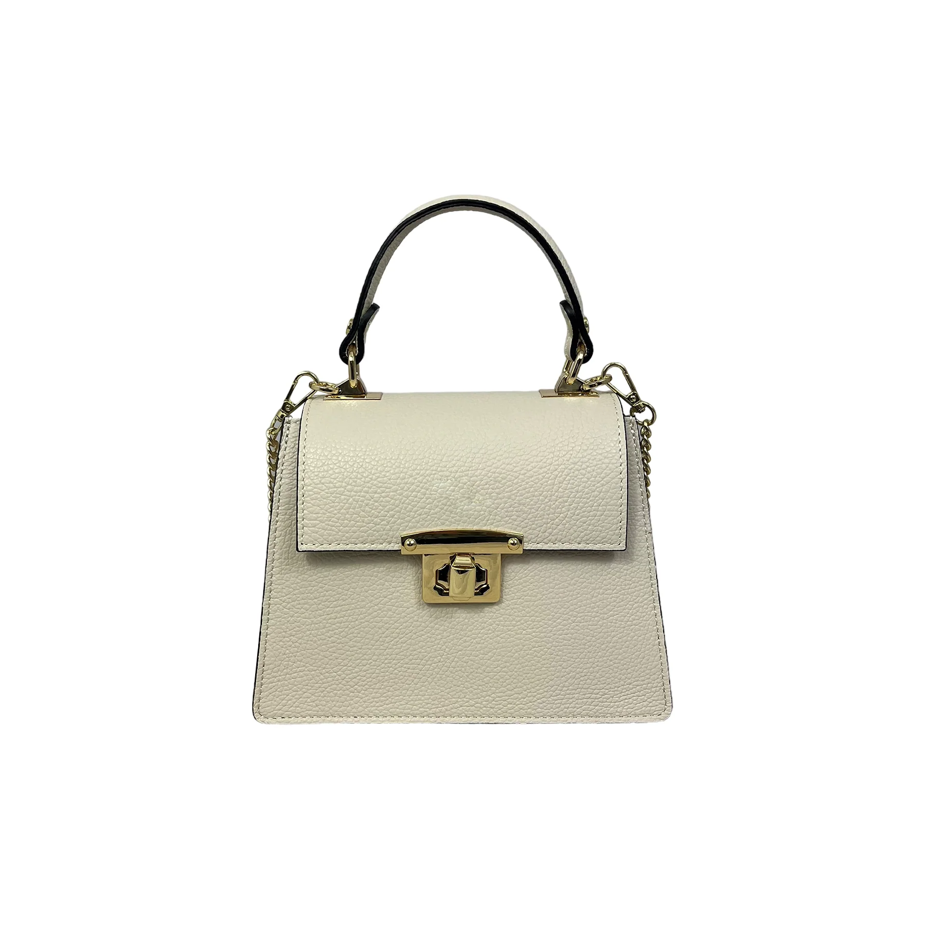 โข Chiusura della borsa a pattina in pelle con serratura girevole