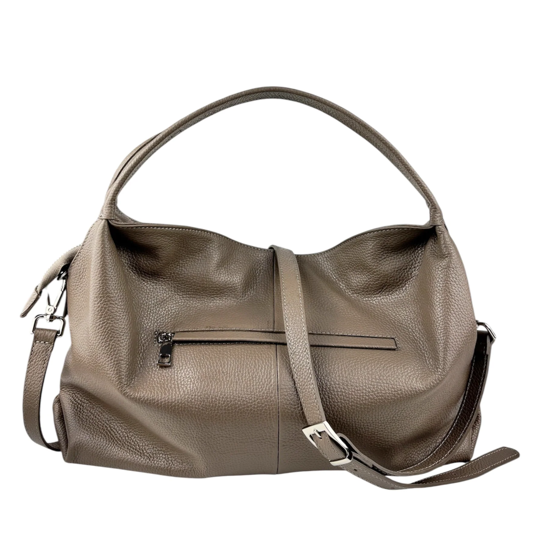 100% Pelle made in ItalyDimensioni: 40 x 28 x 14 cm( larghezza, altezza, profonditร )Manico: Luce: 18 cmChiusura con la zip tiralampo DESCRIZIONE ESTERNOManico: Luce: 18 cmChiusura con la zip tiralampo DESCRIZIONE INTERNOAll’interno รจ foderataTasca con zipTasche porta oggetti