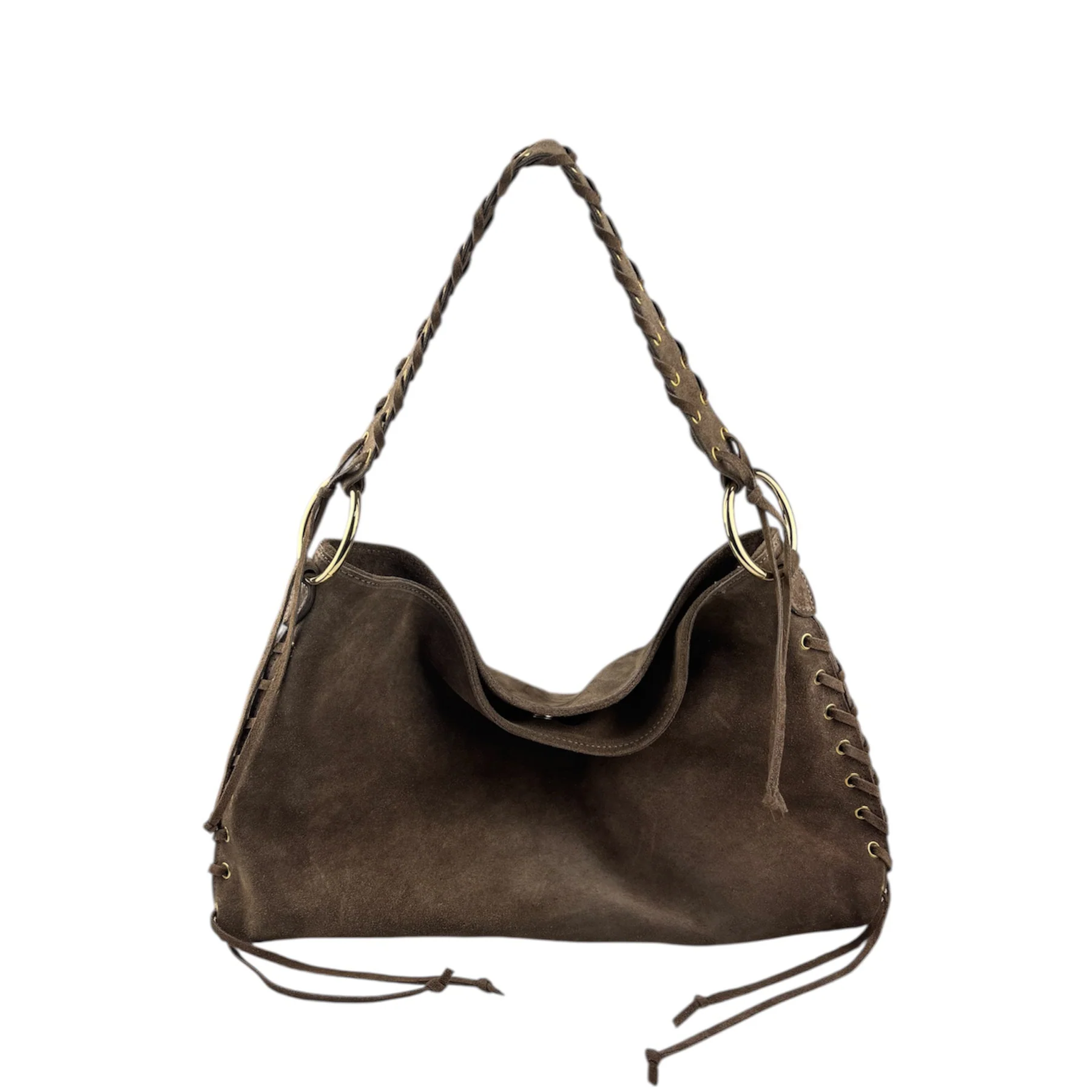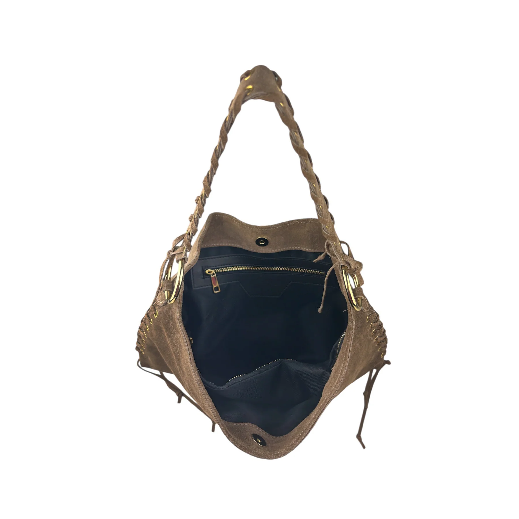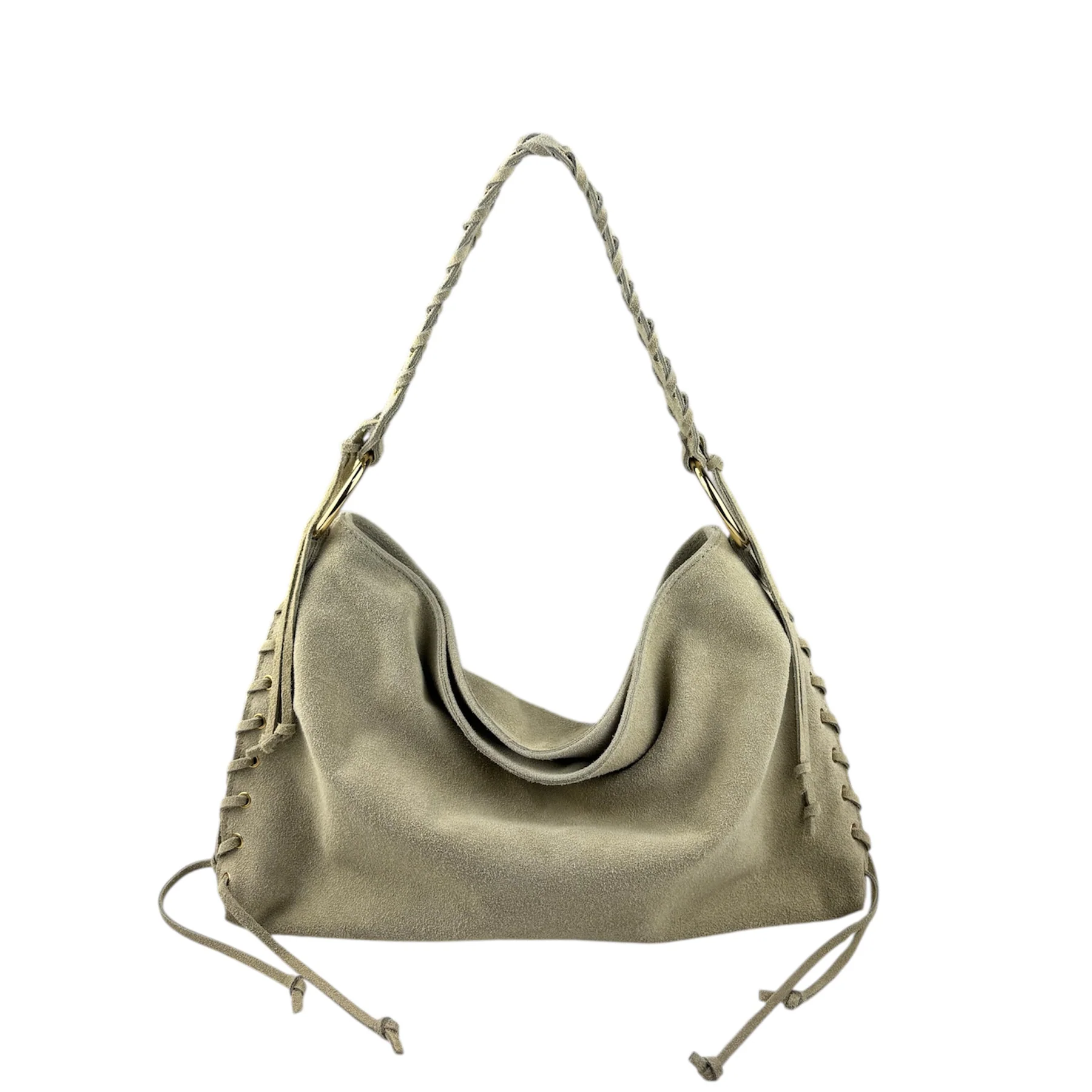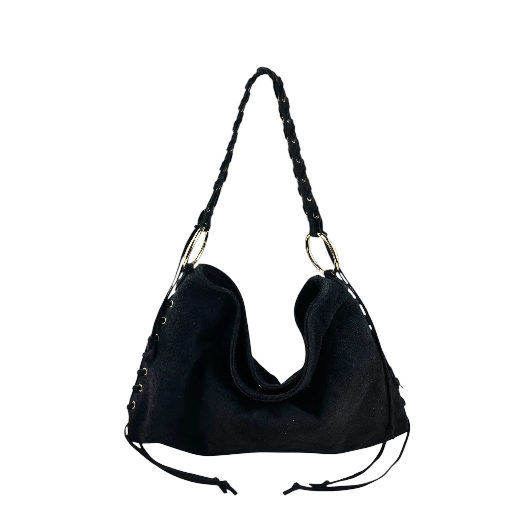 100% Pelle made in ItalyDimensioni: 40 x 24 x 3.5 cm ( larghezza, altezza, profonditร )Manico: Luce: 27 cmChiusura borsa con bottone magnetico DESCRIZIONE ESTERNOChiusura borsa con bottone magneticoManico: Luce: 27 cmDecorata con occhielli ed intrecci DESCRIZIONE INTERNOAll’interno รจ foderataTramezzo con zipTasca con zip