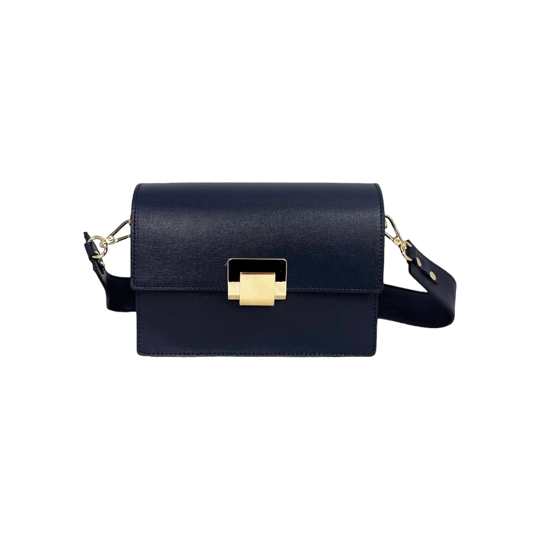โข Chiusura della borsa a pattina con gancio orientabile