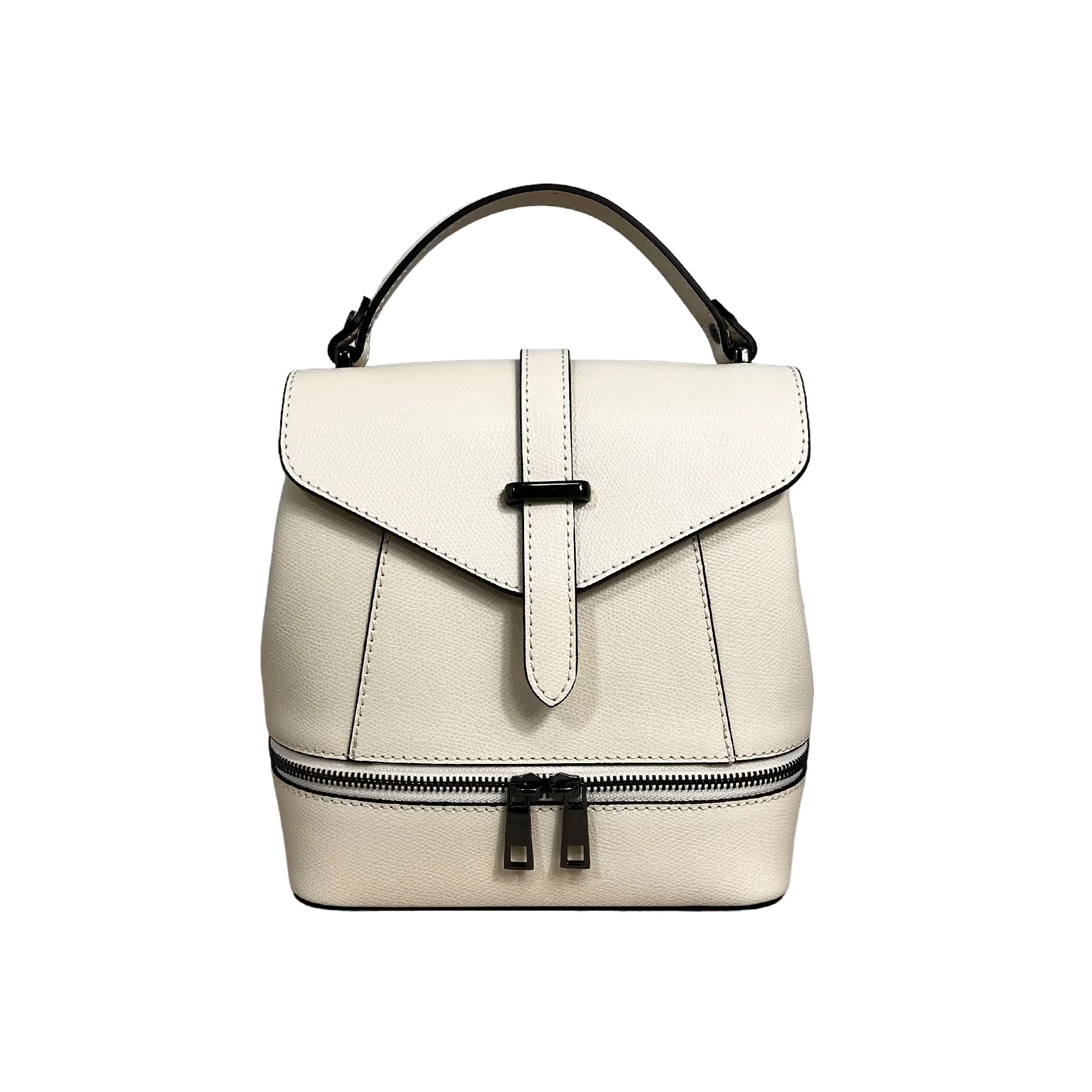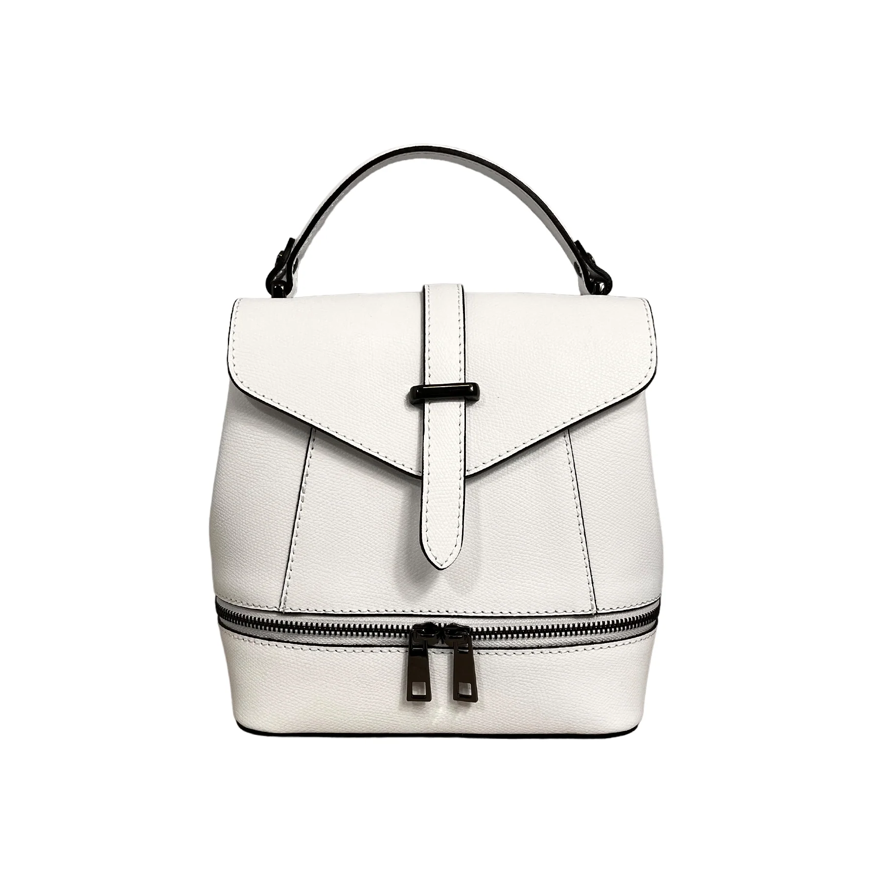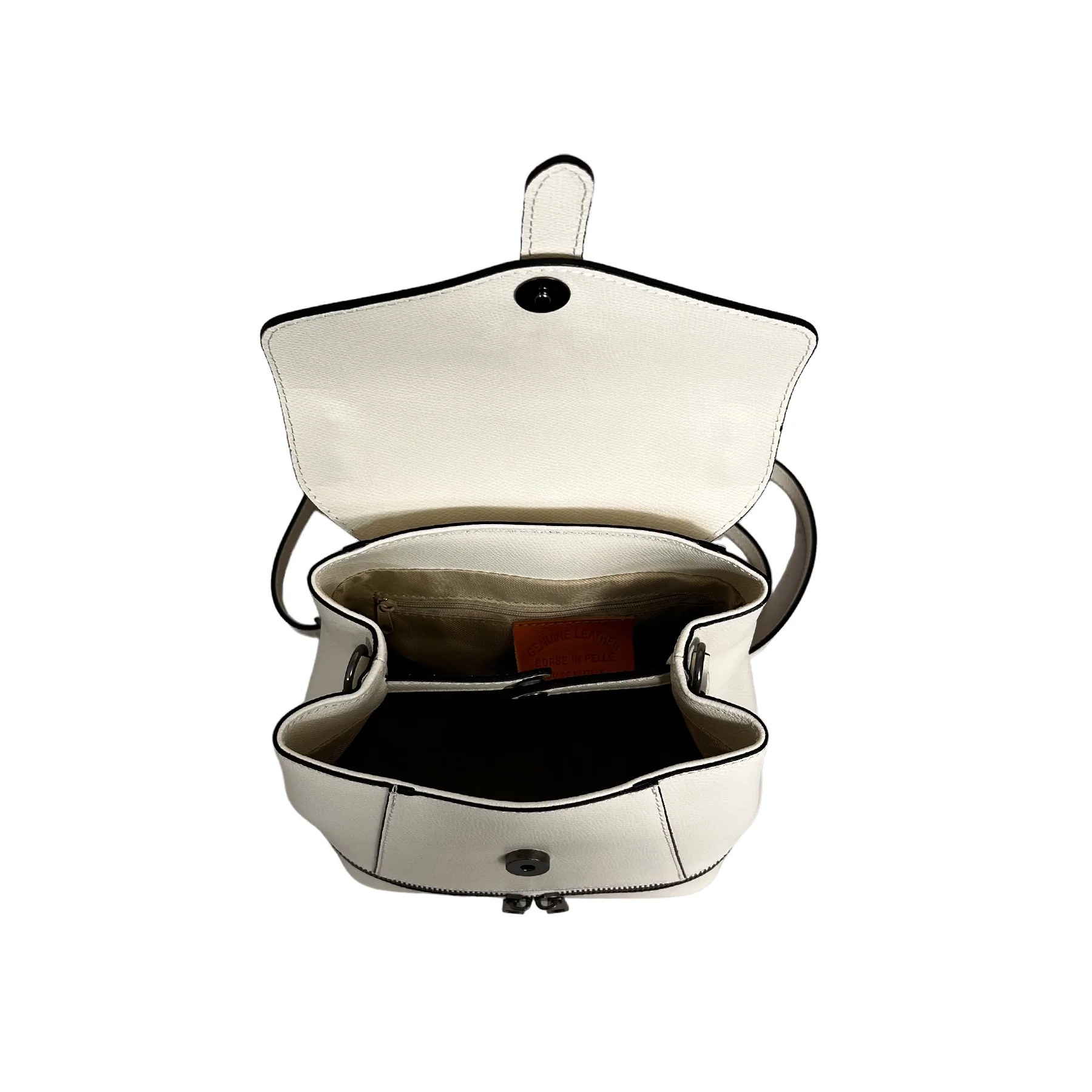 โข 100% pelle Made in Italy โข Possibilitร di essere portato come borsa a mano โข Dimensioni: 21,0 cm x 20,0 cm x 12,5 cm (altezza,larghezza,profonditร ) DESCRIZIONE ESTERNO โข Cerniera sulla base dello zaino con funzionalitร solo estetica. DESCRIZIONE INTERNO โข 1 Scomparto โข Chiusura dello zaino a pattina con bottone calamita. โข Interno in […]