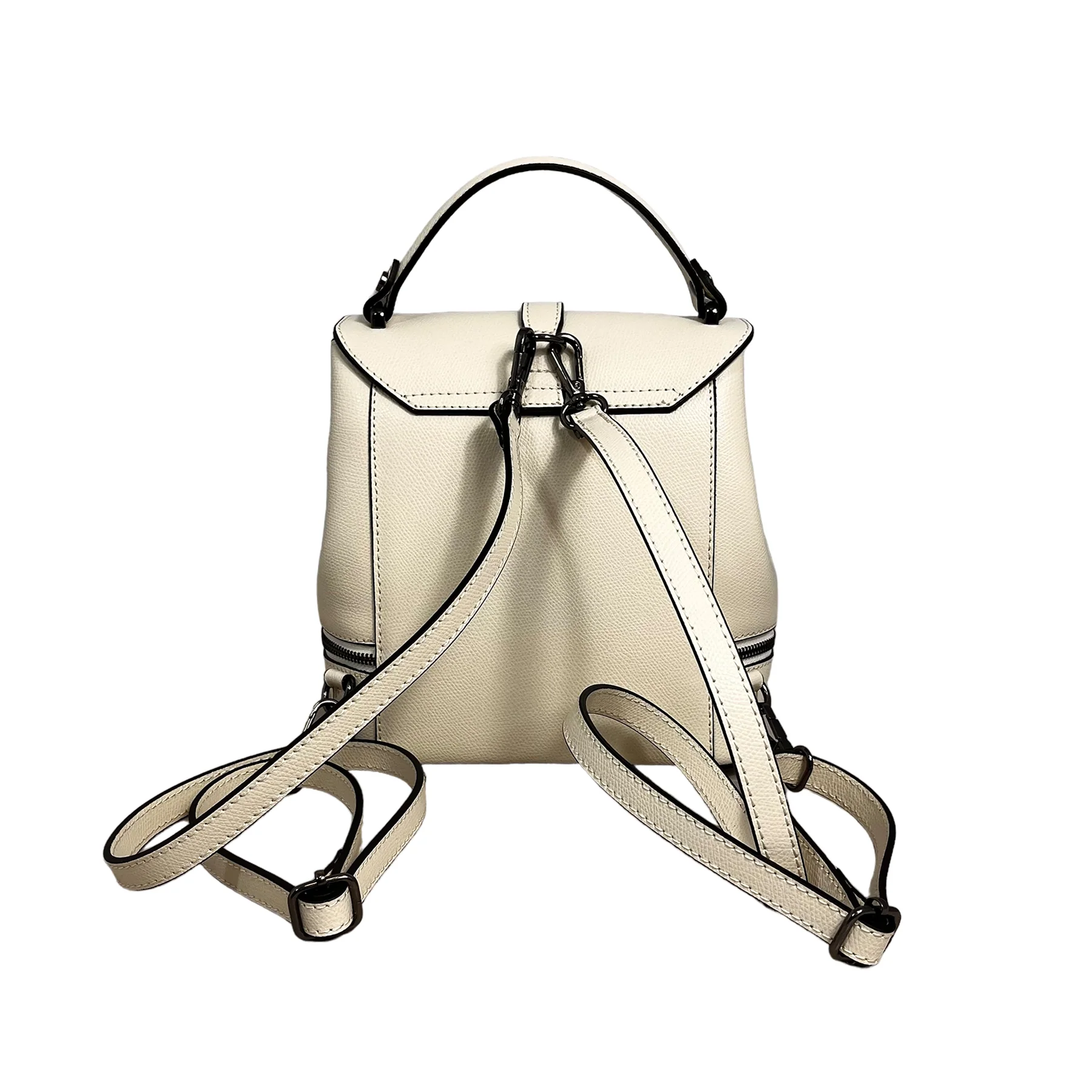 โข Cerniera sulla base dello zaino con funzionalitร solo estetica.