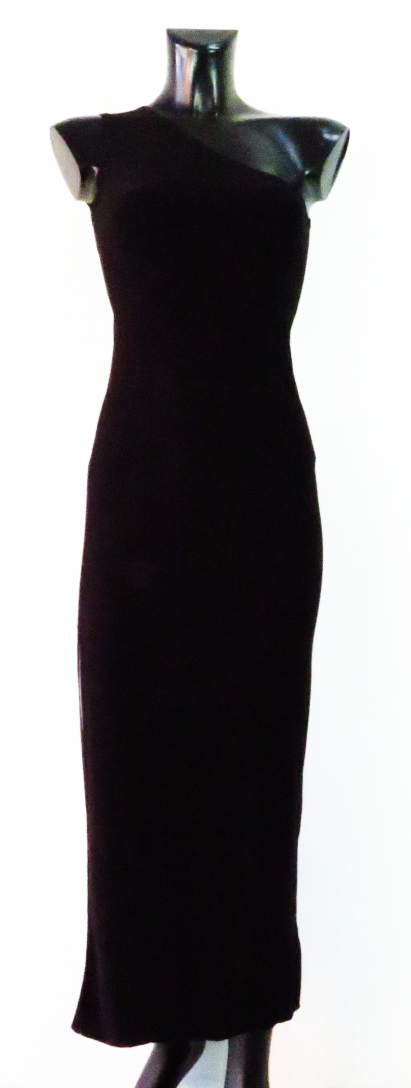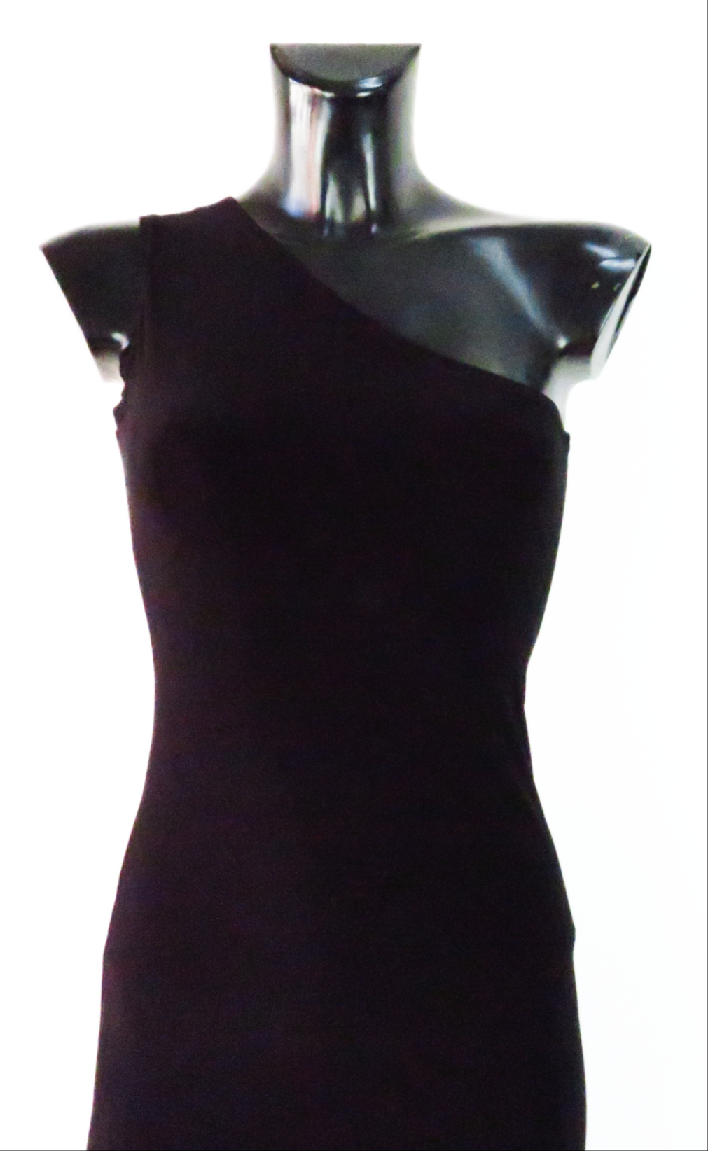 Comodo ma non per questo poco elegante abito lungo mono spalla. La vestibilitร รจ perfetta. Spacco laterale esterno lungo una gamba.