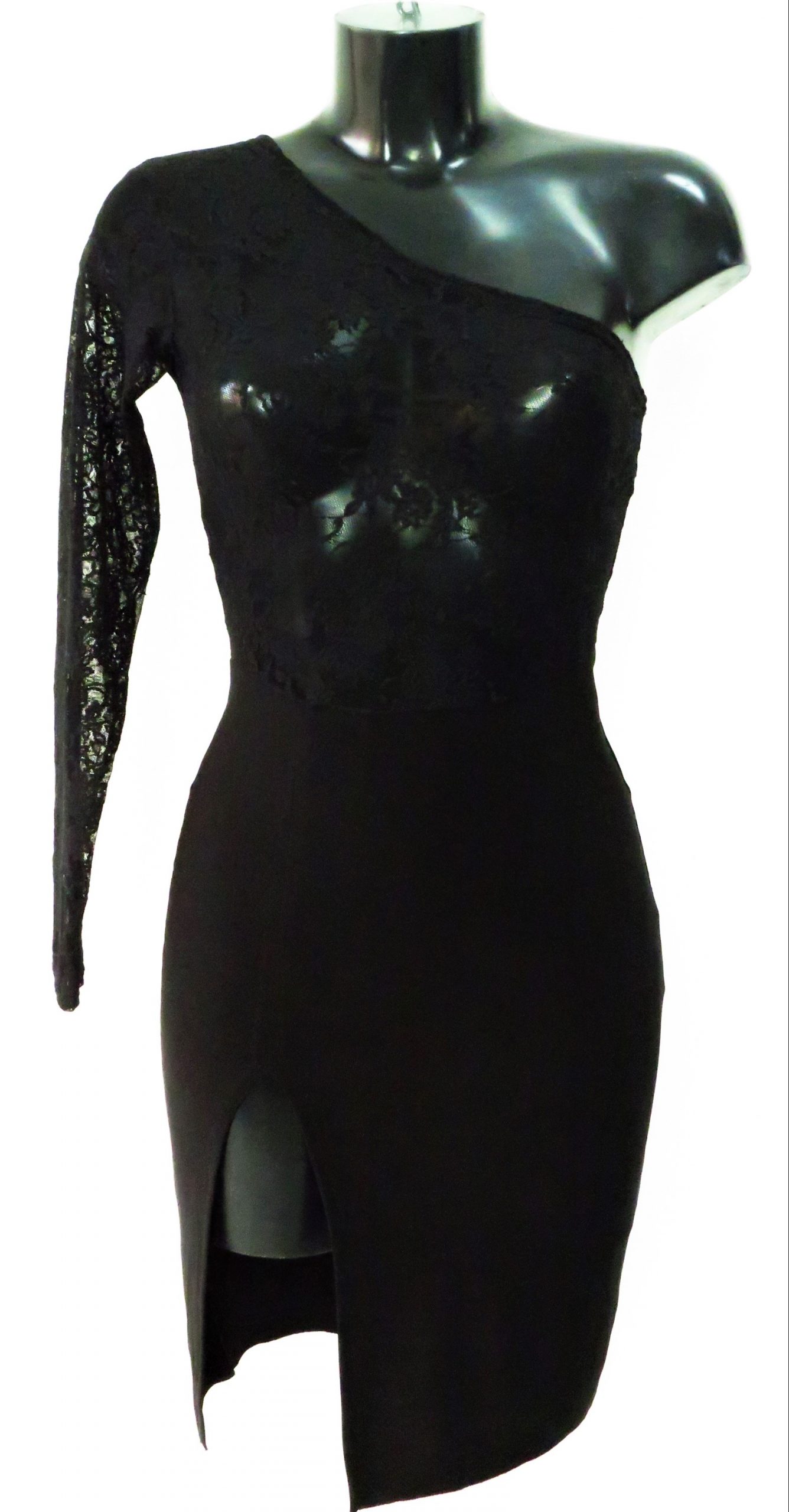 Abito mono spalla con inserto in pizzo e spacco davanti