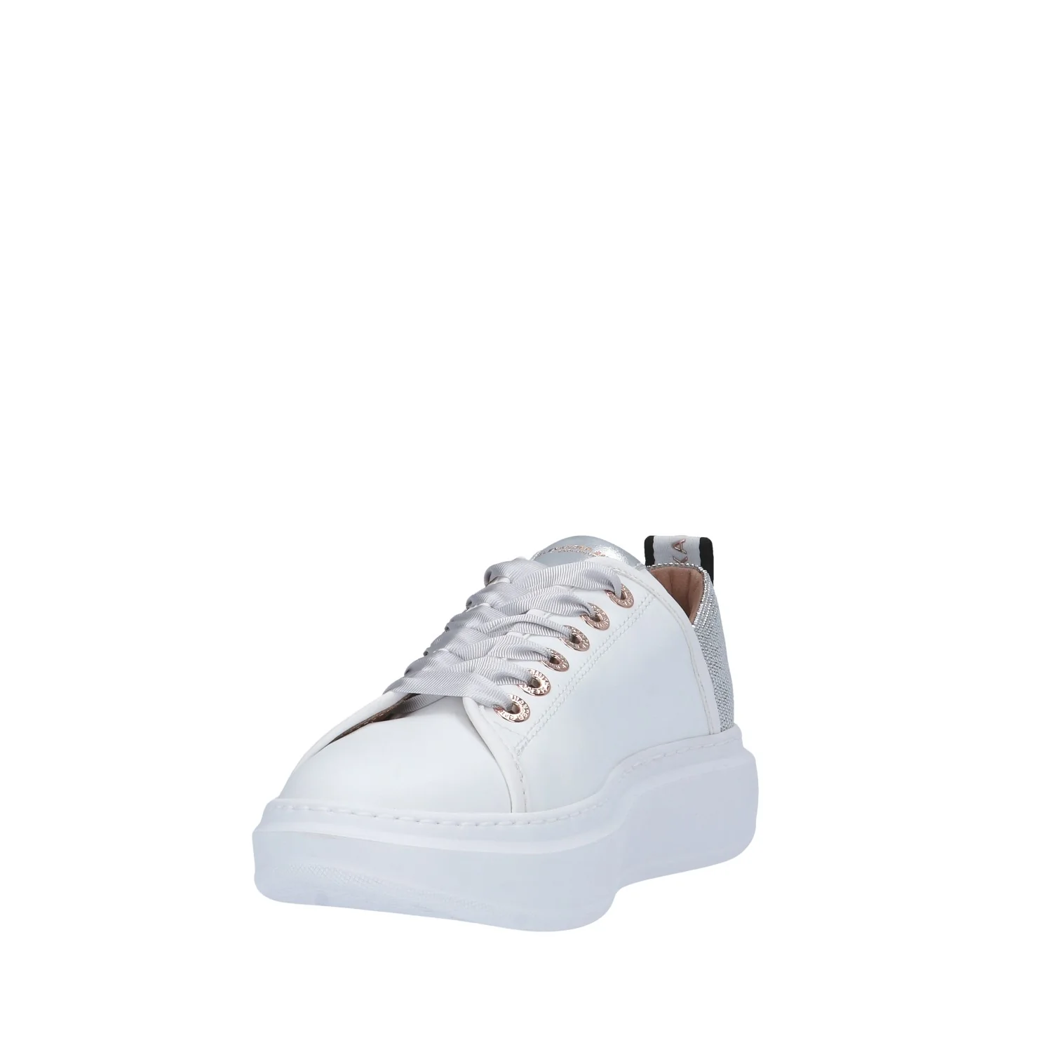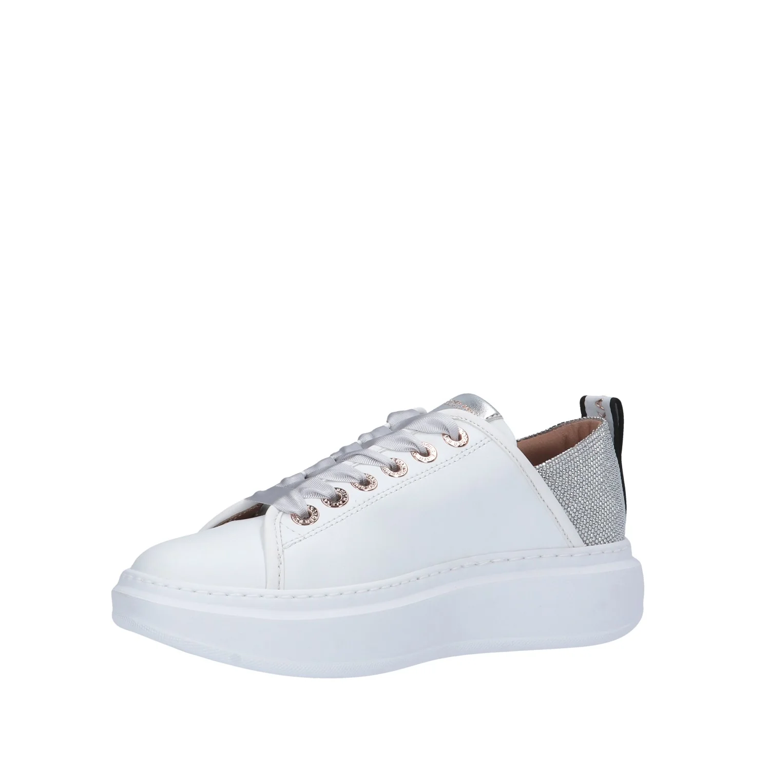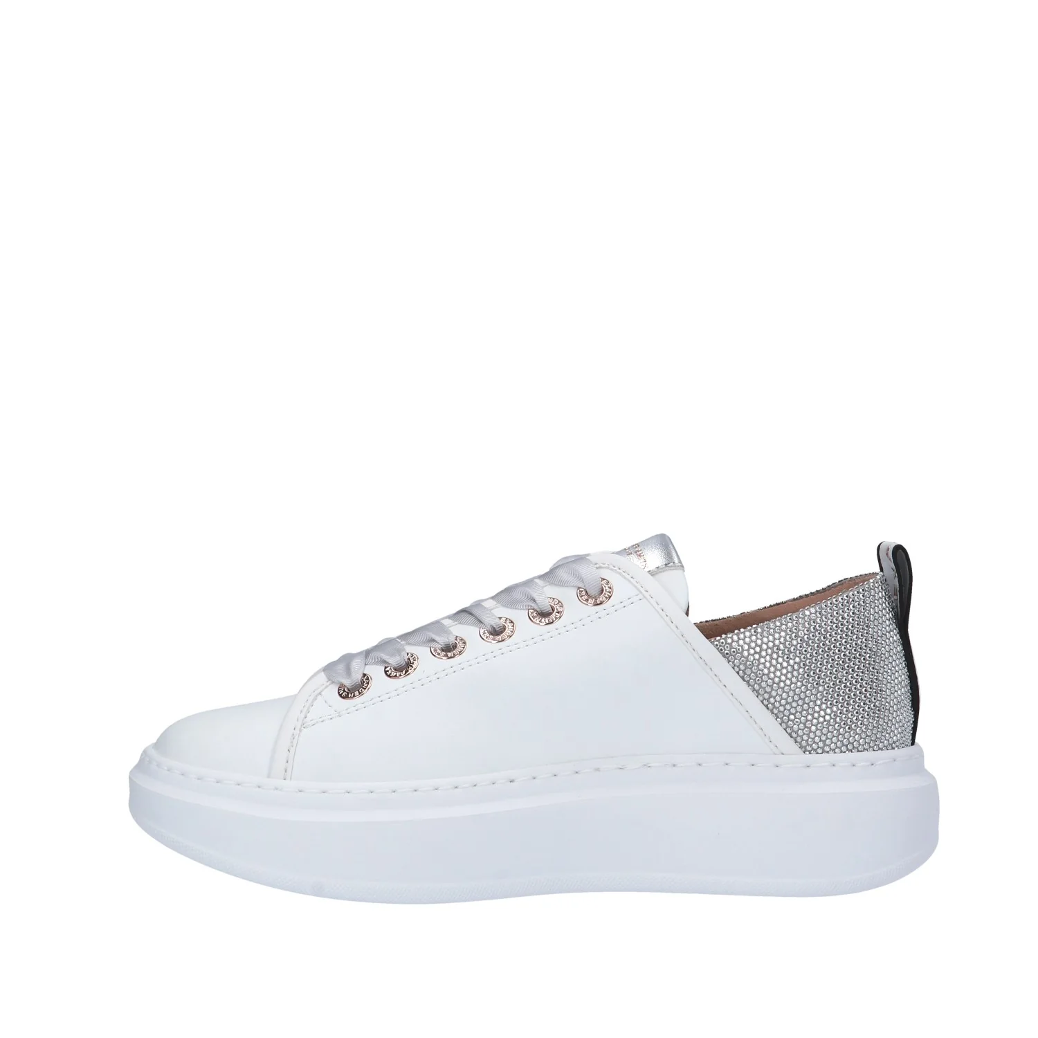 Modello: sneaker; Materiale tomaia: pelle/tessuto; Colore: bianco/retrotallone argento ricoperto di strass; Interno: pelle con soletto removibile; Fondo: gomma 3,5 cm; Chiusura: lacci in gros grain; Calzata: regolare; Descrizione riferita al numero 37.Art.:WYW-0495-WSV