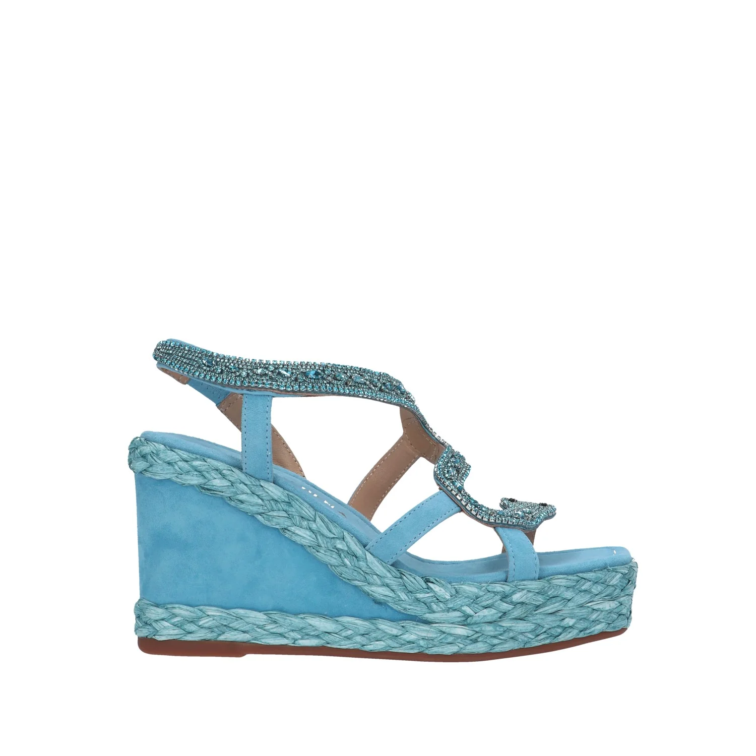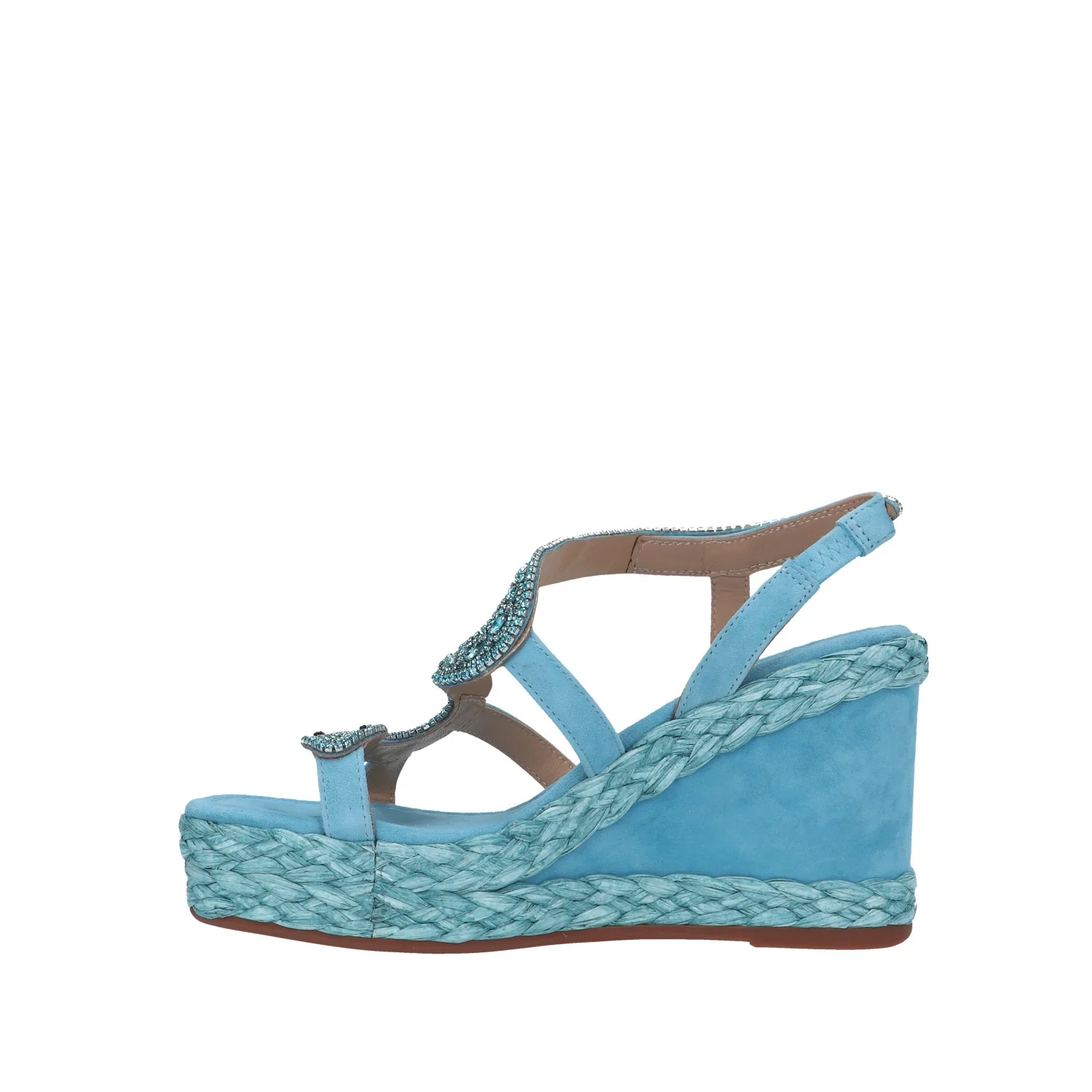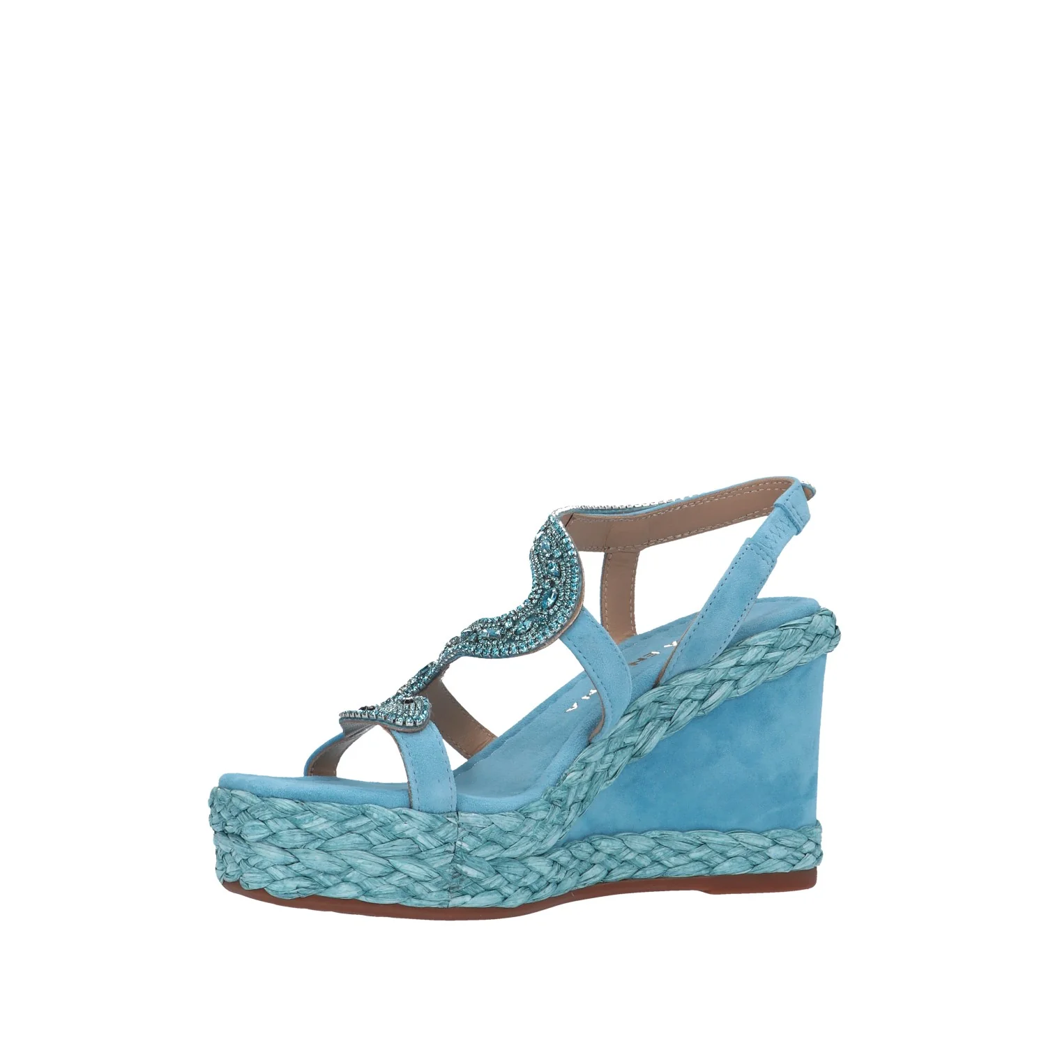 Modello: sandalo zeppa; Materiale tomaia: scamosciato; Colore: celeste; Interno: scamosciato; Fondo: zeppa 10 cm in corda e scamosciato; Chiusura: cinturino elastico; Calzata: regolare;Descrizione riferita al numero 37. Il colore effettivo potrebbe variare leggermente a causa della risoluzione dello schermo del tuo dispositivo. Art.:V240989
