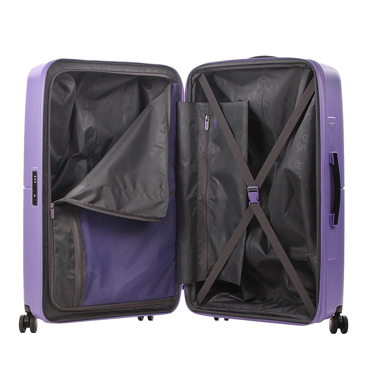 Modello: spinner L; Materiale scocca: 100% polipropilene; Colore: violet purple; Interno: poliestere; Dettagli: maniglia superiore bitubo, chiusura a tripla combinazione (TSA); Dimensioni: 77x50x30/33 cm; Volume: 104/121 lt; Peso: 3.7 kg; Ruote: 4. Il colore effettivo potrebbe variare leggermente a causa della risoluzione dello schermo del tuo dispositivo. Art.:MG5*91003