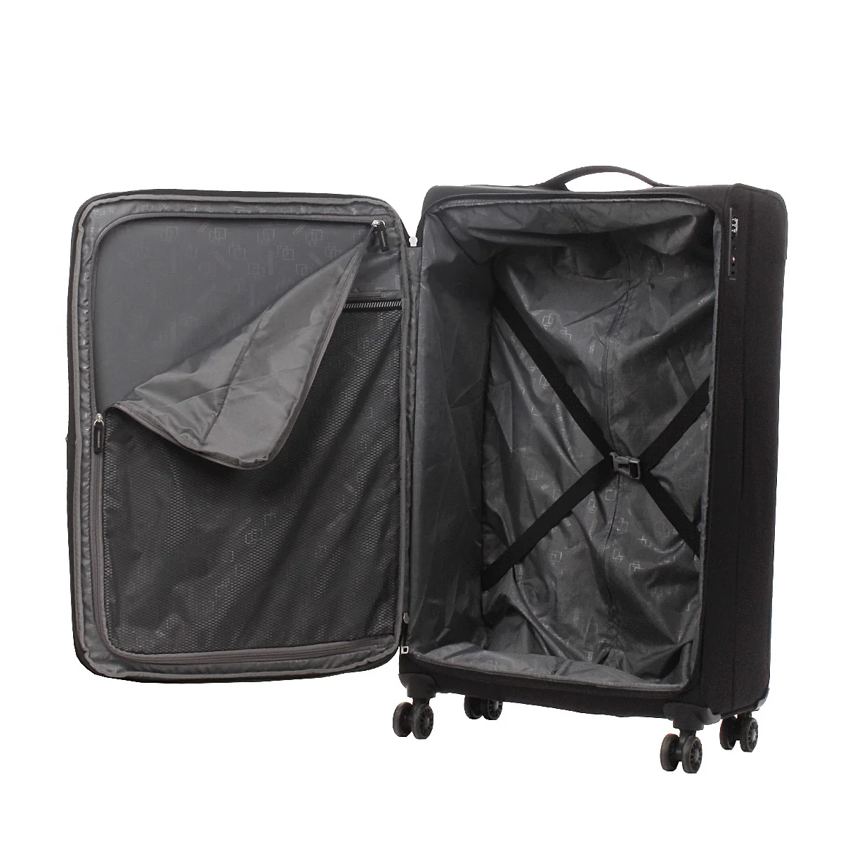 Modello: spinner L Aerospin; Materiale scocca: 100% poliestere; Colore: nero; Interno: poliestere; Dettagli: maniglia superiore bitubo, chiusura a tripla combinazione (TSA), due tasche frontali con zip; Dimensioni: 48x80x30/33 cm; Volume: 106/116lt; Peso: 2.8 kg; Ruote: 4. Il colore effettivo potrebbe variare leggermente a causa della risoluzione dello schermo del tuo dispositivo. Art.:MH6*09003