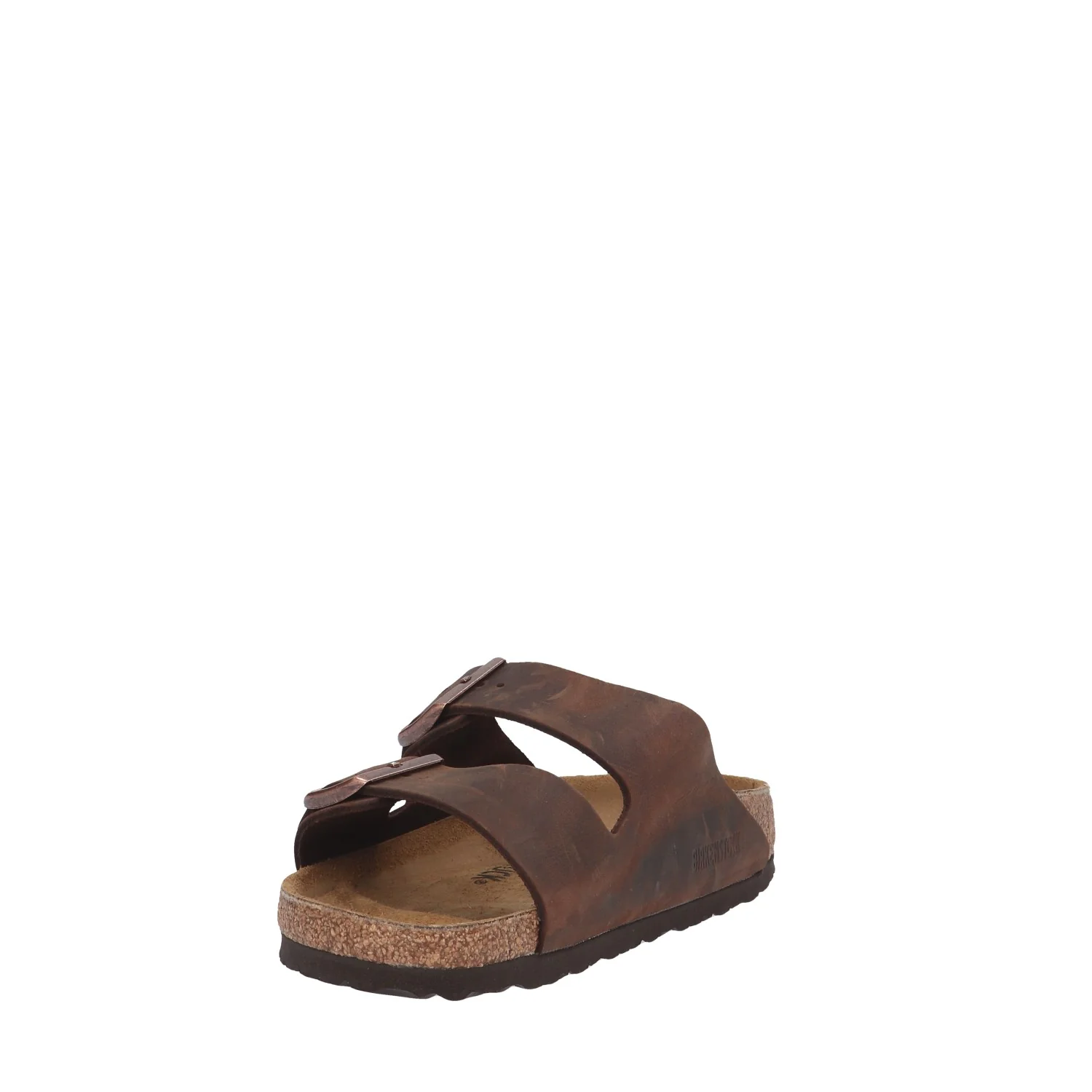 Modello: sandalo basso Arizona; Materiale tomaia: pelle oliata; Colore: marrone; Interno: scamosciato, con plantare in sughero e lattice; Fondo: gomma; Chiusura: fibbie regolabili; Calzata: narrow; Descrizione riferita al numero 39.Il colore effettivo potrebbe variare leggermente a causa della risoluzione dello schermo del tuo dispositivo. Art.:052533
