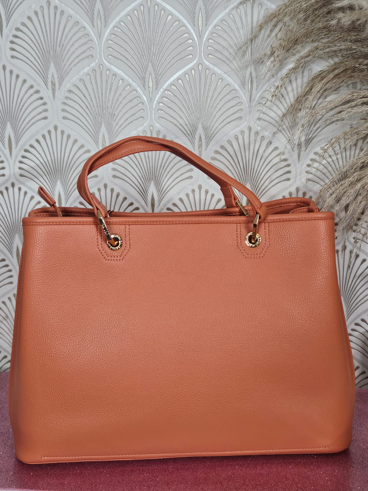Scegli la borsa top handle in similpelle con logo in metallo e tracolla animalier rimovibile. Per un tocco sofisticato e versatile ai tuoi look. Tracolla in tessuto removibile e regolabile con passante, lunghezza 120 cm. L 37,5 x H 27 x W 11 cm