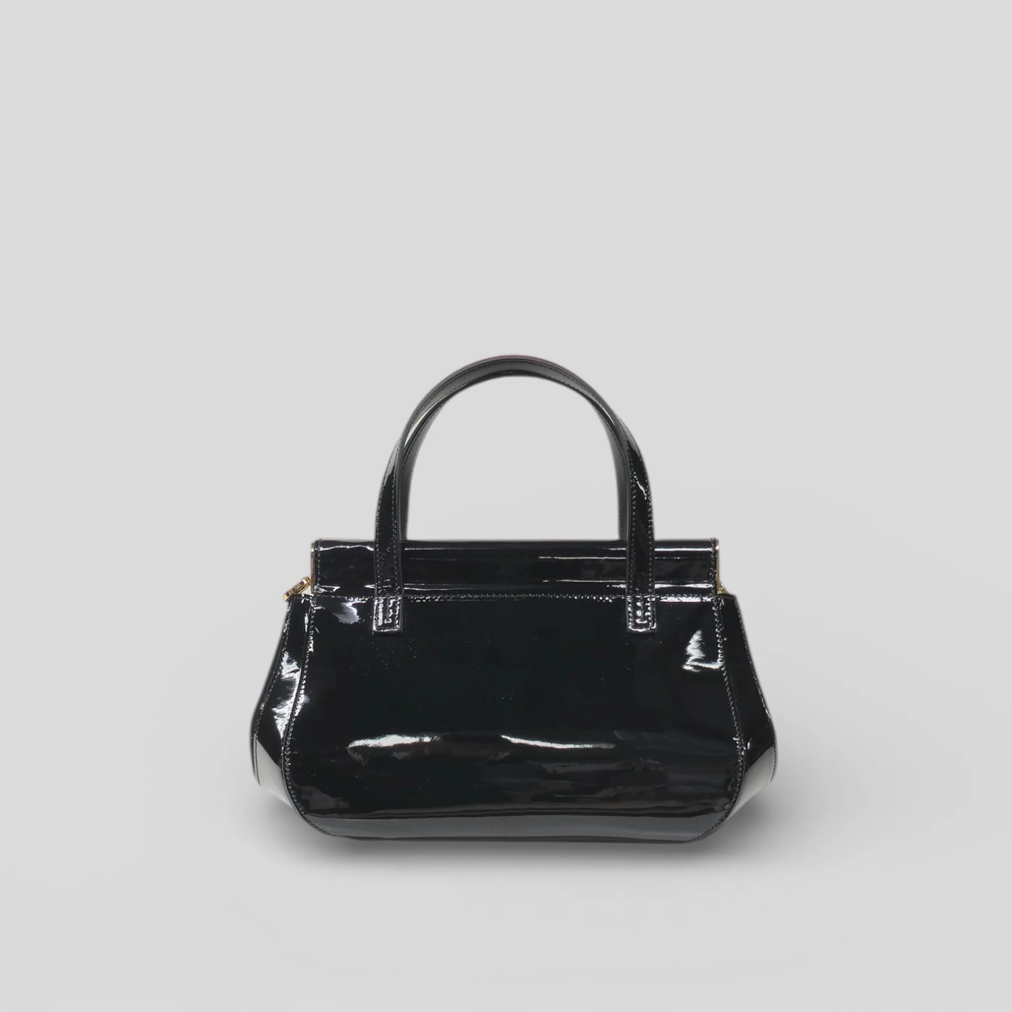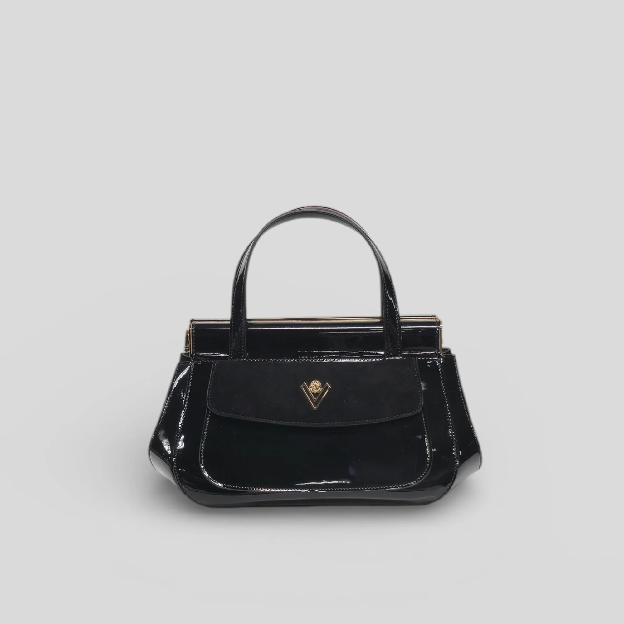 Borsa a mano rigida e con profili arrotondati. L’abbinamento camoscio-vernice la rende estremamente glam, perfetta per donare un tocco di stile ad ogni look.