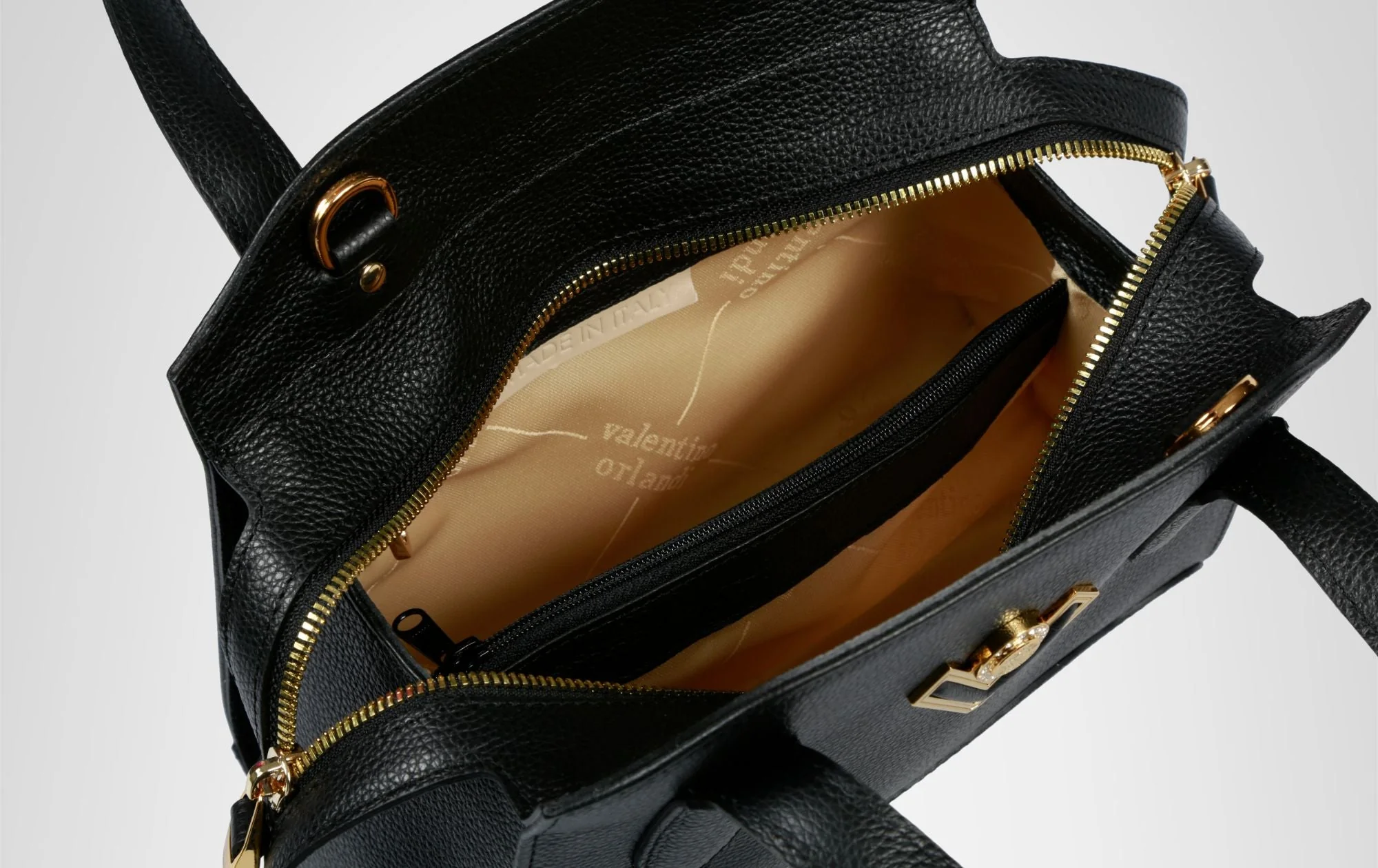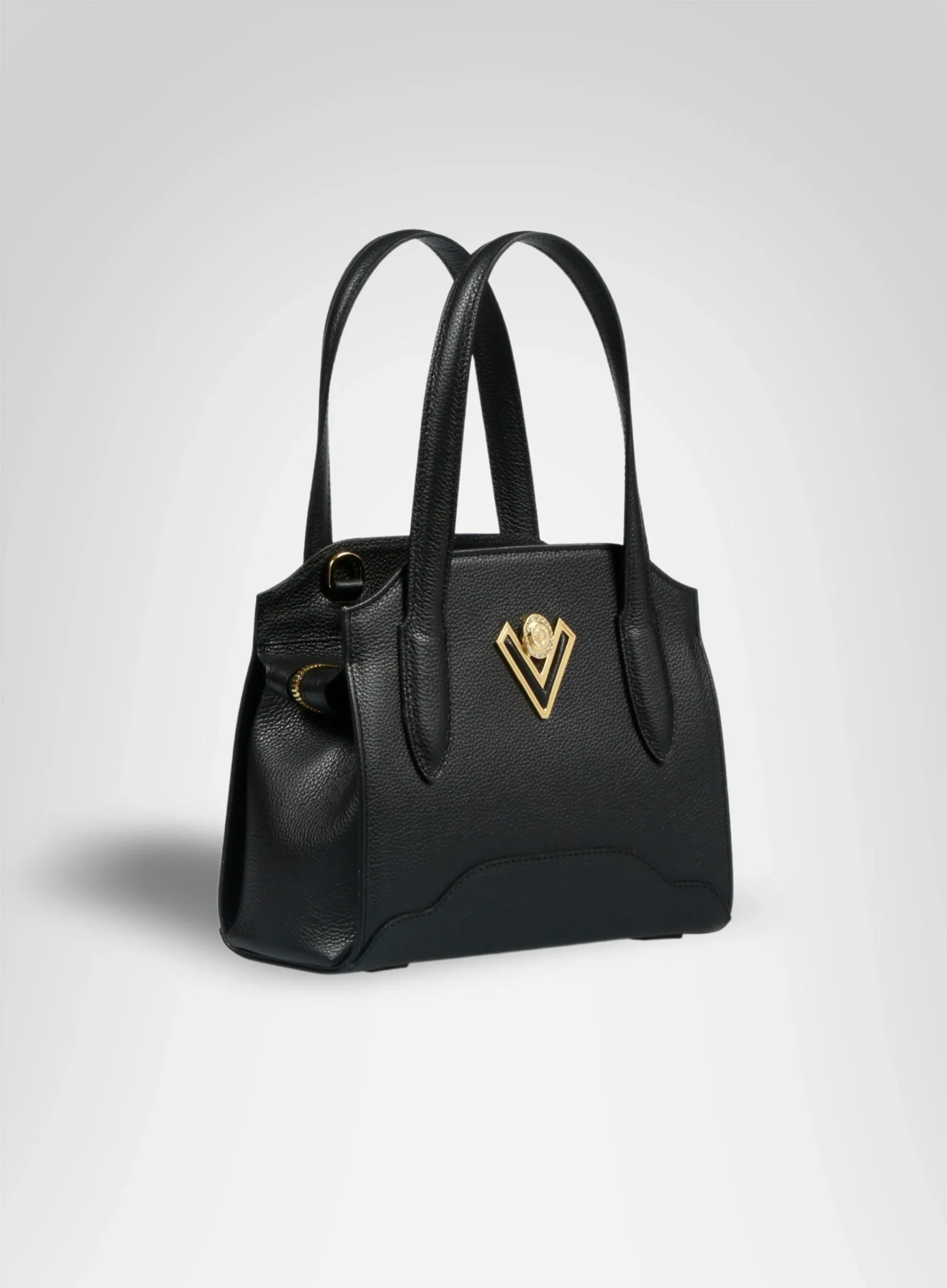 Handbag con design essenziale, impreziosita dal logo Valentino Orlandi. Un modello che esprime perfettamente l’eleganza del brand e la contemporaneità dello stile