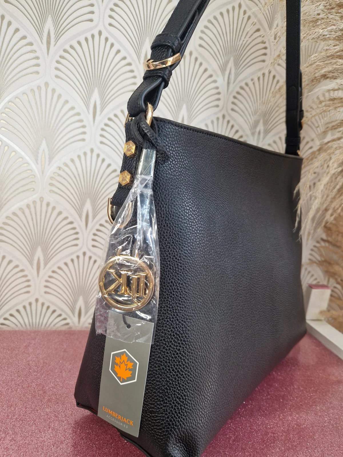 Borsa Lumberjack PE25, singolo manico a spalla, chiusura con zip. Interno con tasca e laccio porta pochette. Ciondolo LJ Dimensioni 35 x 28 x 14