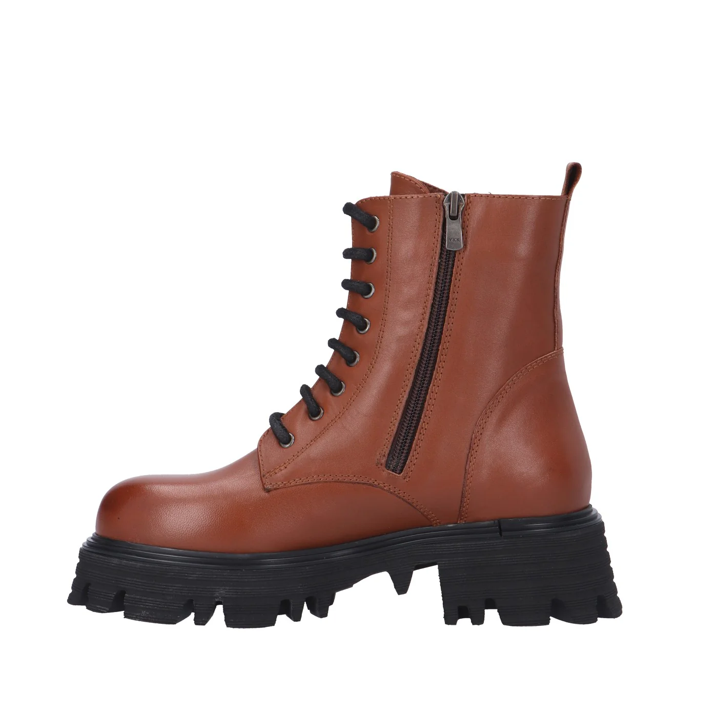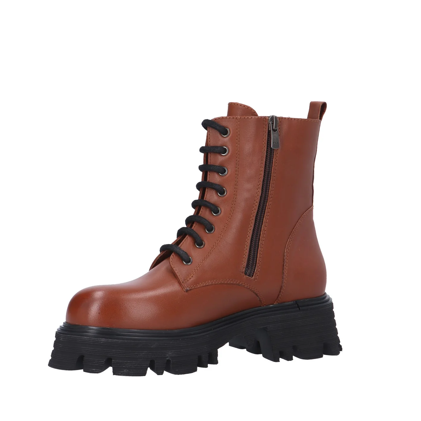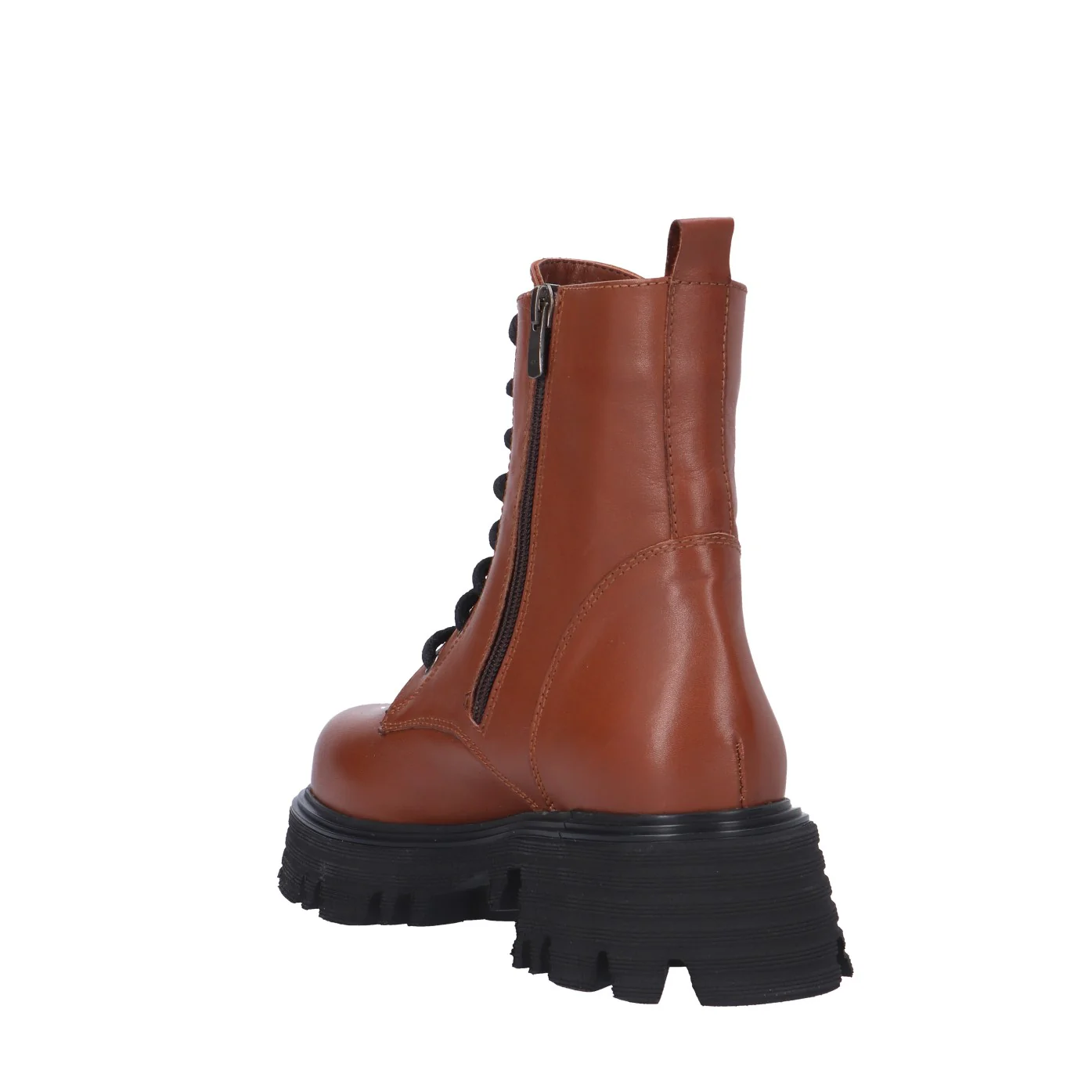 Modello: anfibio;Materiale tomaia: pelle;Colore: cuoio;Interno: pelle e tessuto;Fondo: platform 5/3 cm;Chiusura: lacci e zip laterale;Calzata: regolare;Descrizione riferita al numero 37.Art.:FC1317