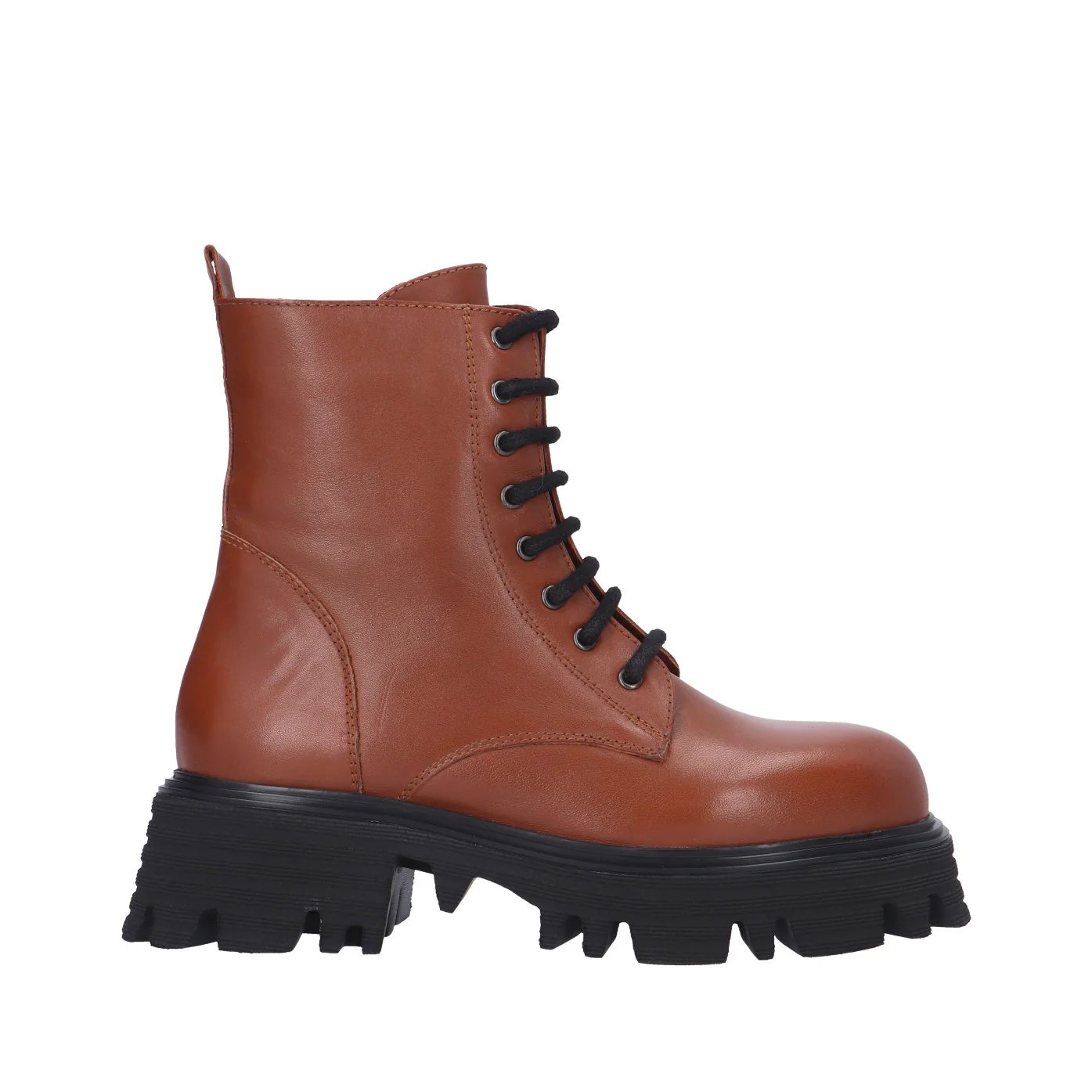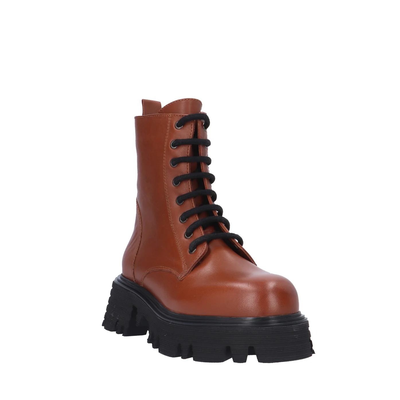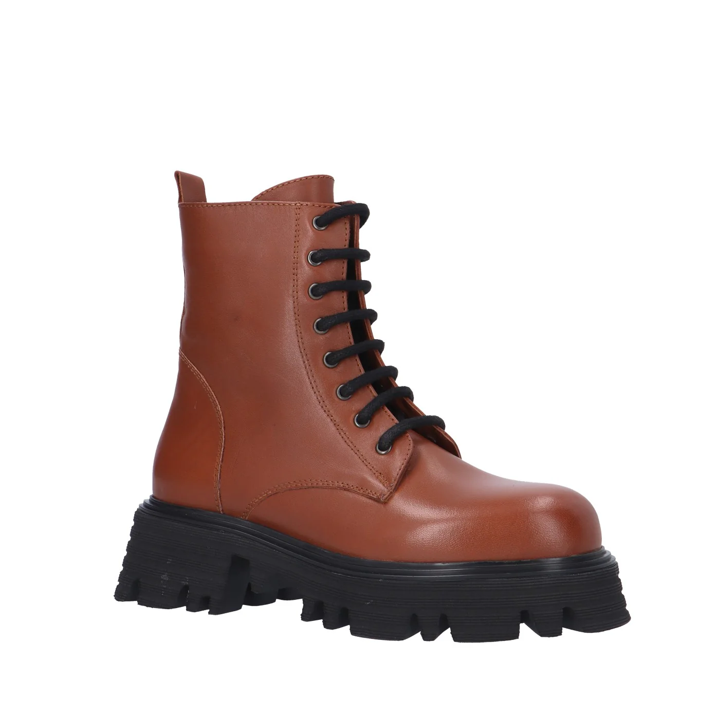 Modello: anfibio;Materiale tomaia: pelle;Colore: cuoio;Interno: pelle e tessuto;Fondo: platform 5/3 cm;Chiusura: lacci e zip laterale;Calzata: regolare;Descrizione riferita al numero 37.Art.:FC1317