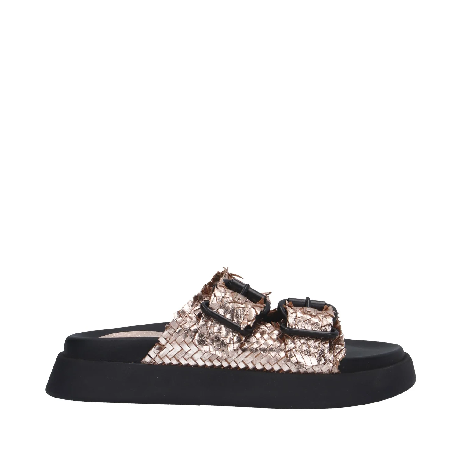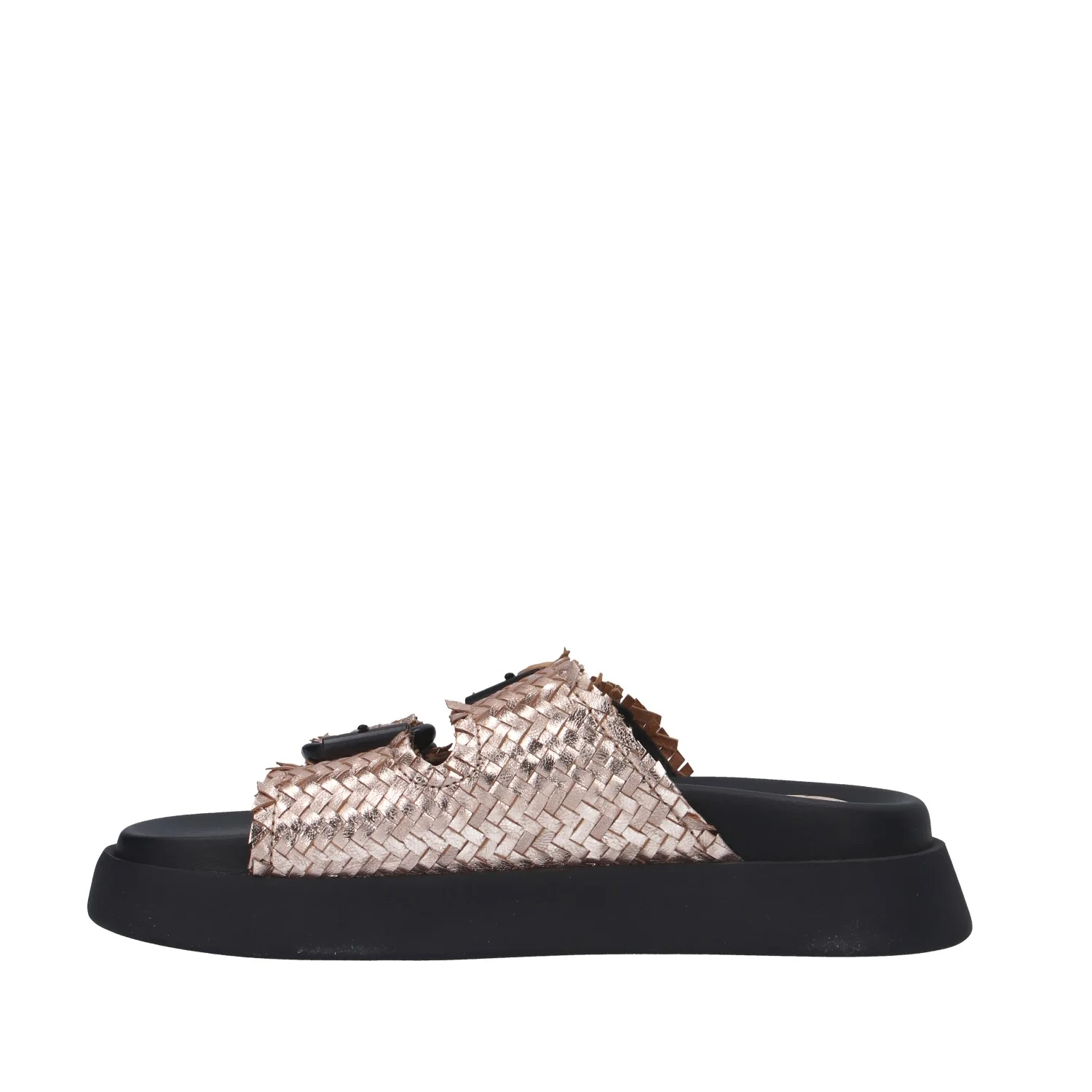 Modello: sandalo; Materiale tomaia: ecopelle intrecciata; Colore: platino; Interno: pelle; Fondo: platform 4,5 cm; Chiusura: fibbie; Calzata: regolare.Descrizione riferita al numero 37.Il colore effettivo potrebbe variare leggermente a causa della risoluzione dello schermo del tuo dispositivo. Art.:FF7210
