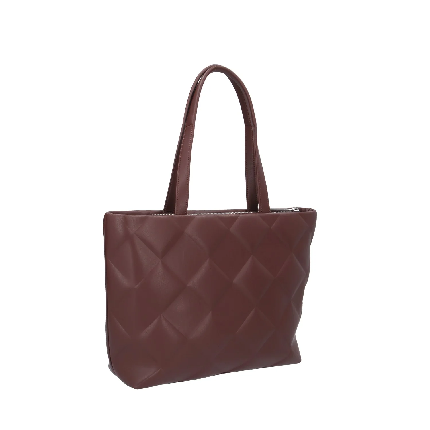Modello: shopping; Materiale: ecopelle effetto imbottito; Colore: cioccolato; Interno: tessuto; Dettagli: 2 taschini interni; Chiusura: zip; Dimensioni: 31/39x27x10 cm; Il colore effettivo potrebbe variare leggermente a causa della risoluzione dello schermo del tuo dispositivo. Art.:K60K612906