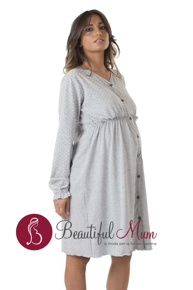 Camicia da notte pre-post parto manica lunga, interamente aperta davanti per allattare comodamente.