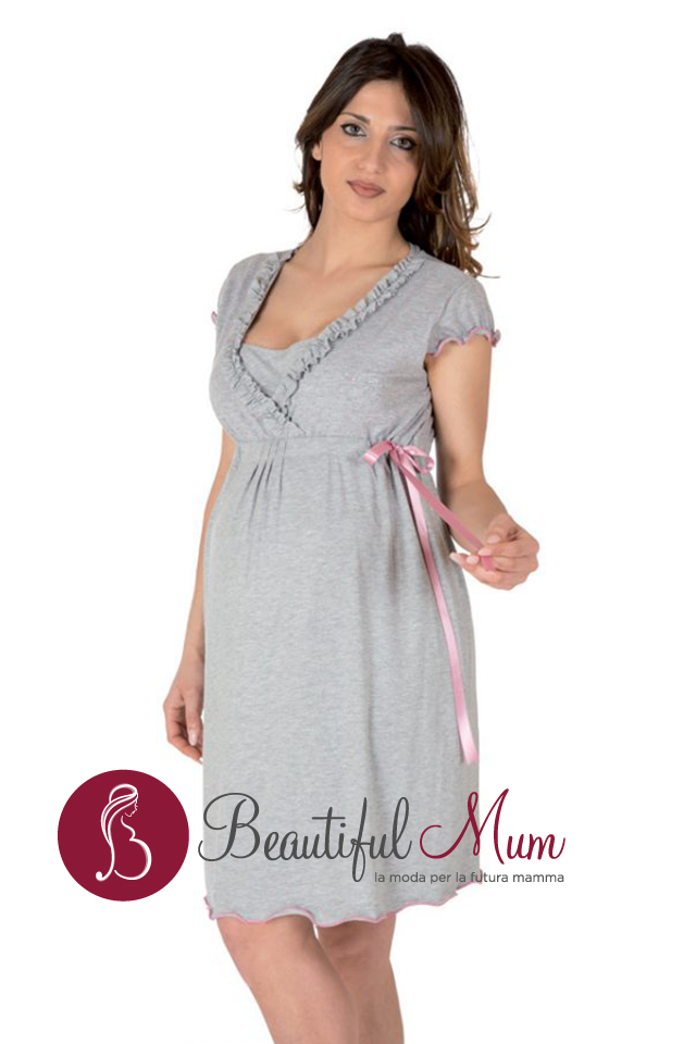 Camicia da notte pre-post parto manica corta, maglia con taglio incrociato che permettere di allattare comodamente, nastro in raso nella fascia sottoseno. Variante di colore unica.