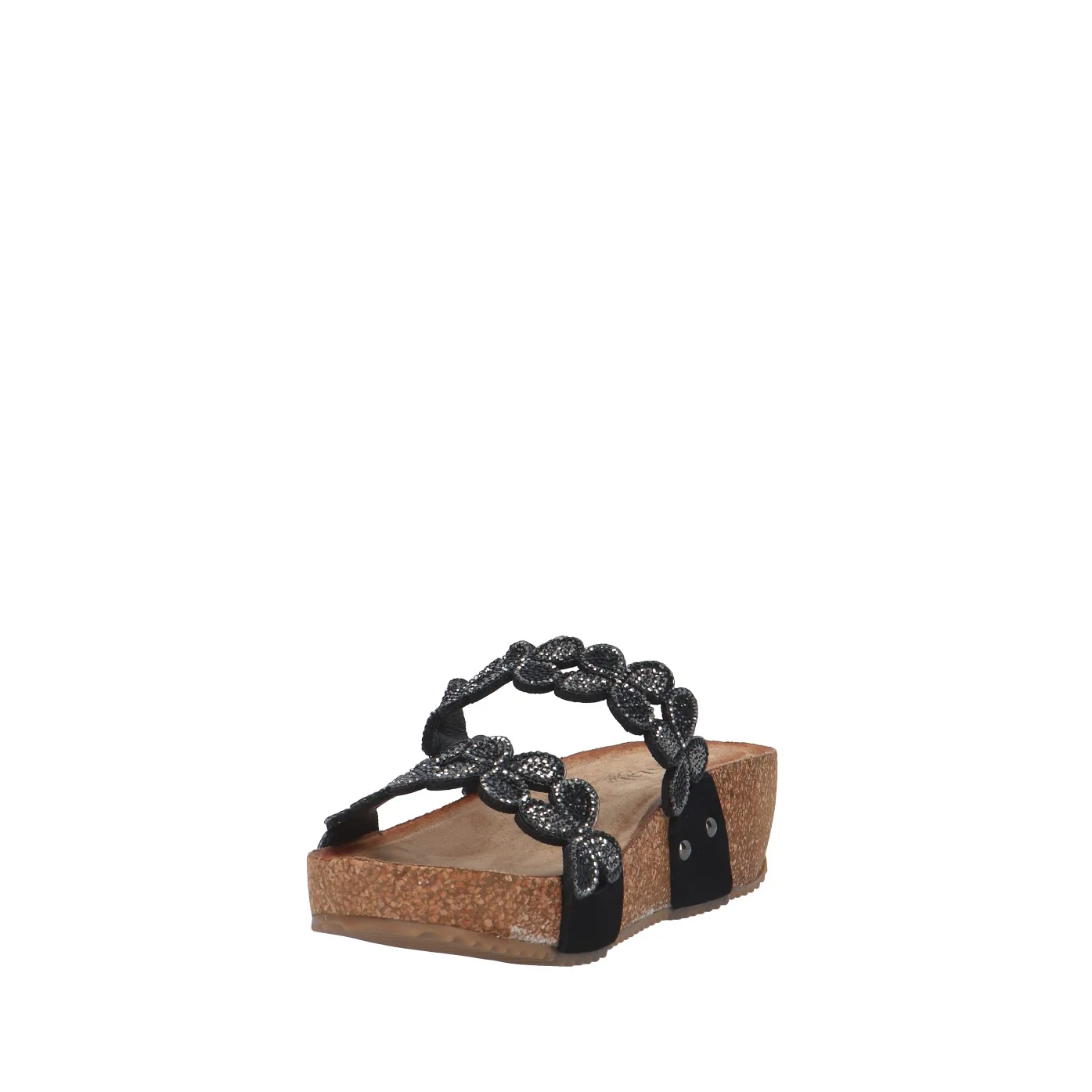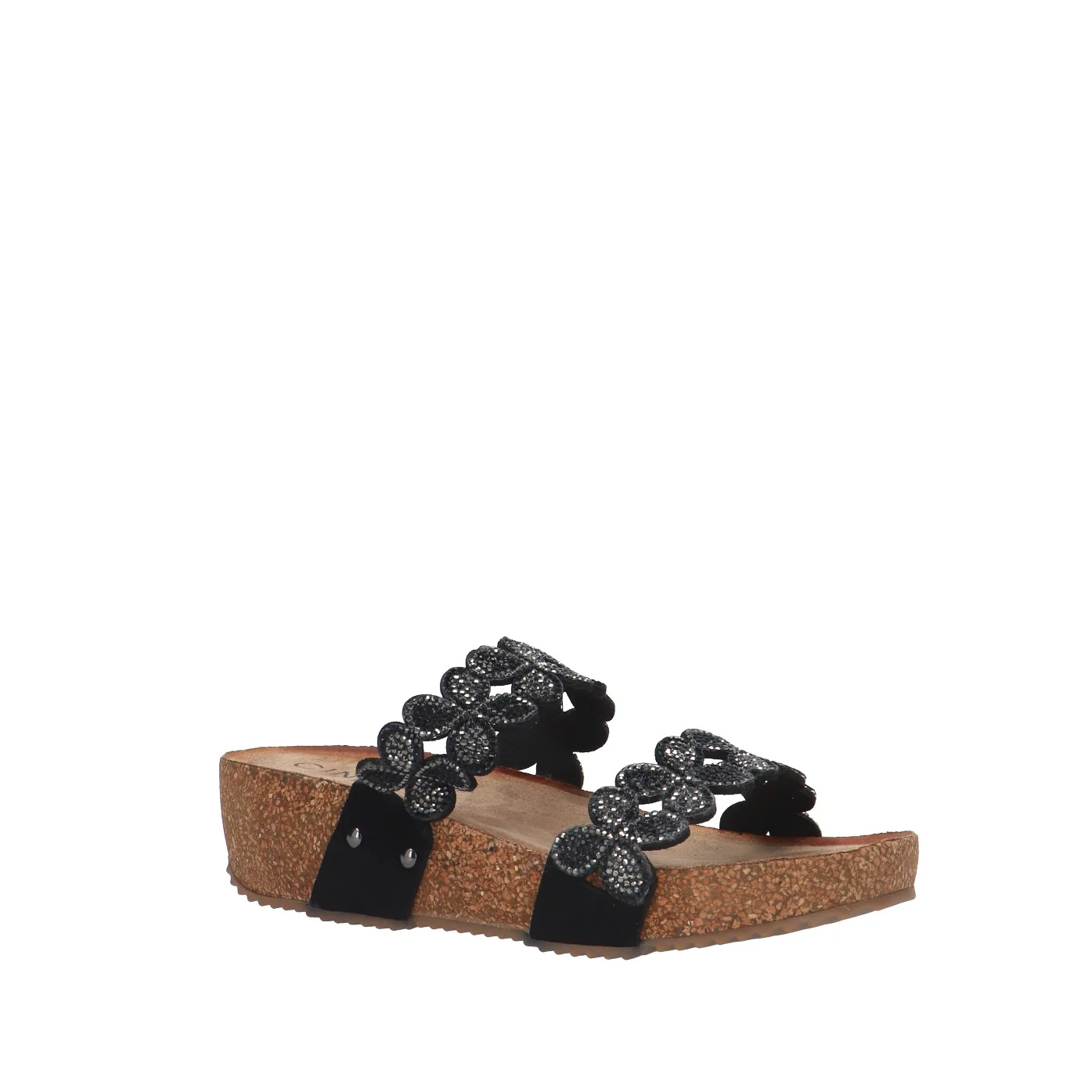 Modello: ciabatta zeppa a due fascette; Materiale tomaia: tessuto con strass; Colore: nero; Interno: scamosciato; Fondo: zeppa 4 cm; Chiusura: no; Calzata: regolare;Descrizione riferita al numero 37.Il colore effettivo potrebbe variare leggermente a causa della risoluzione dello schermo del tuo dispositivo. Art.:CI1003 002