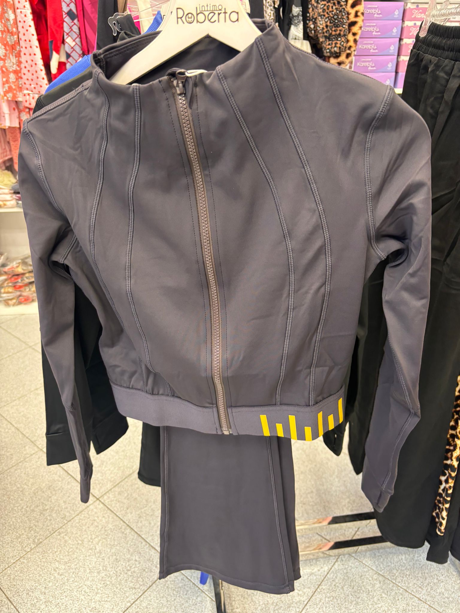 coordinato donna, composto da pantalone a zampa e felpa corta con zip