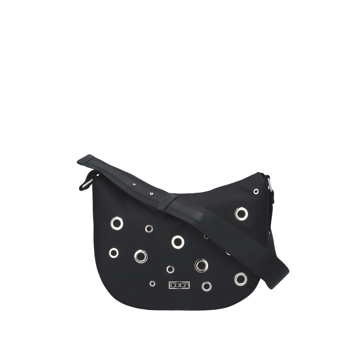 Modello: mezzaluna; Materiale: nylon con borchie; Colore: nero; Dettagli: 1 taschino con zip; Chiusura: zip; Dimensioni: 32x25x11 cm; Il colore effettivo potrebbe variare leggermente a causa della risoluzione dello schermo del tuo dispositivo. Art.:X42.001