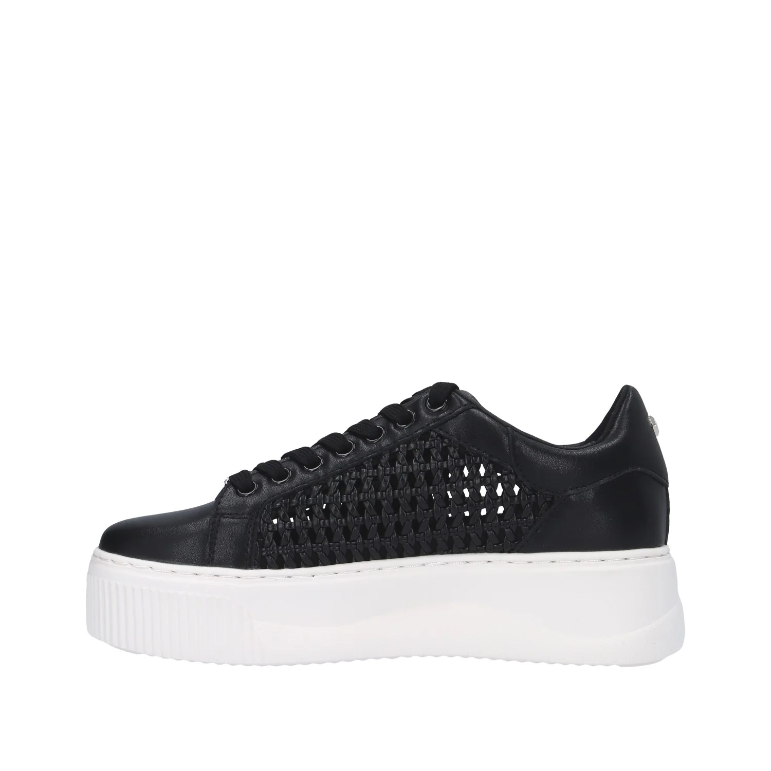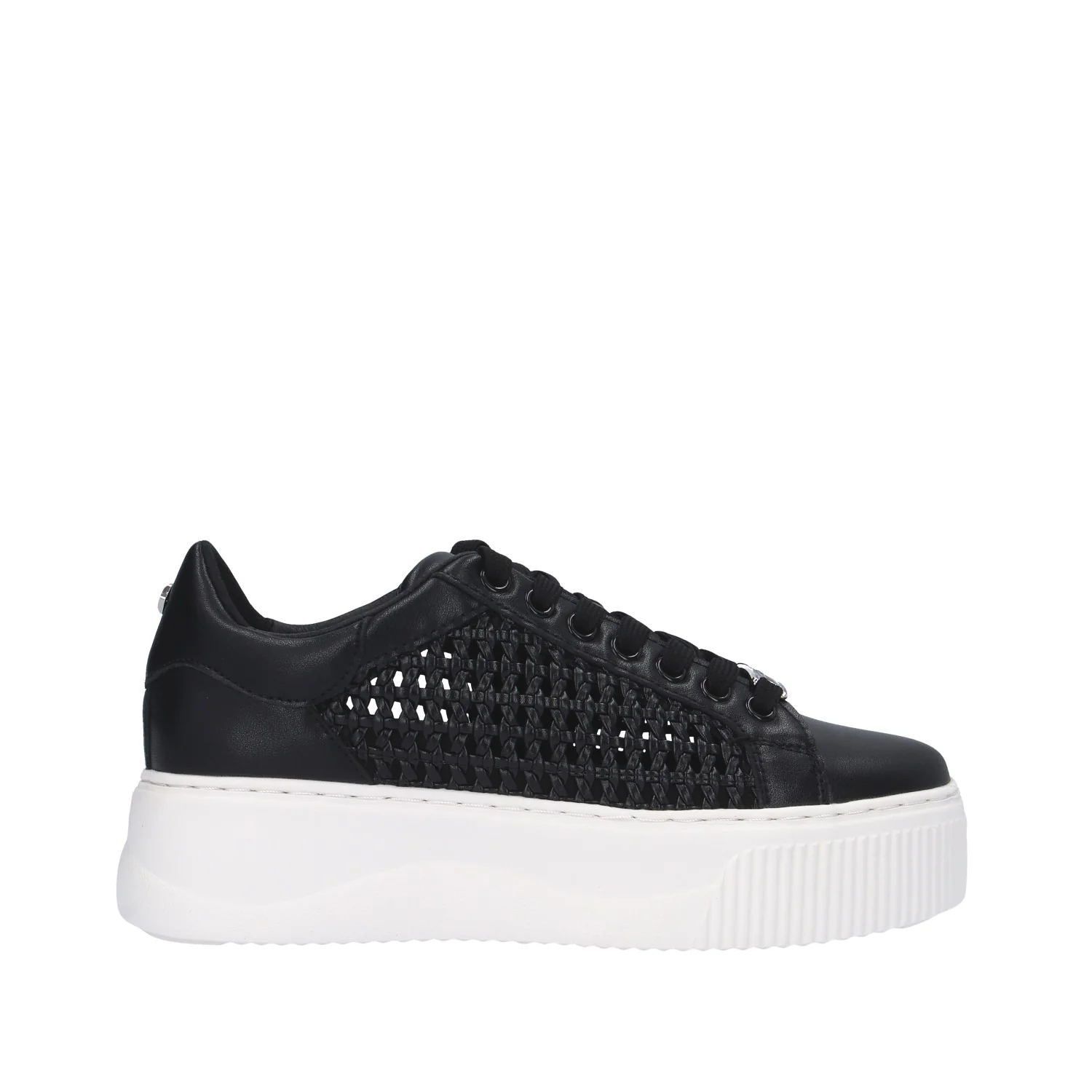 Modello: sneaker; Materiale tomaia: pelle traforata; Colore: nero; Interno: pelle; Fondo: platform 4,5 cm; Chiusura: lacci; Calzata: regolare;Riferimento descrizione numero 37. Il colore effettivo potrebbe variare leggermente a causa della risoluzione dello schermo del tuo dispositivo. Art.:CLW423701