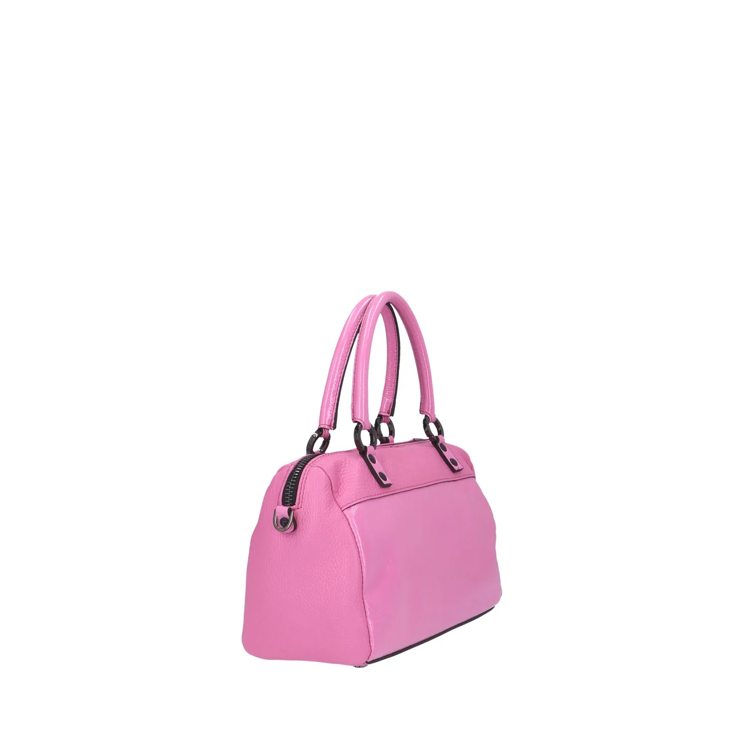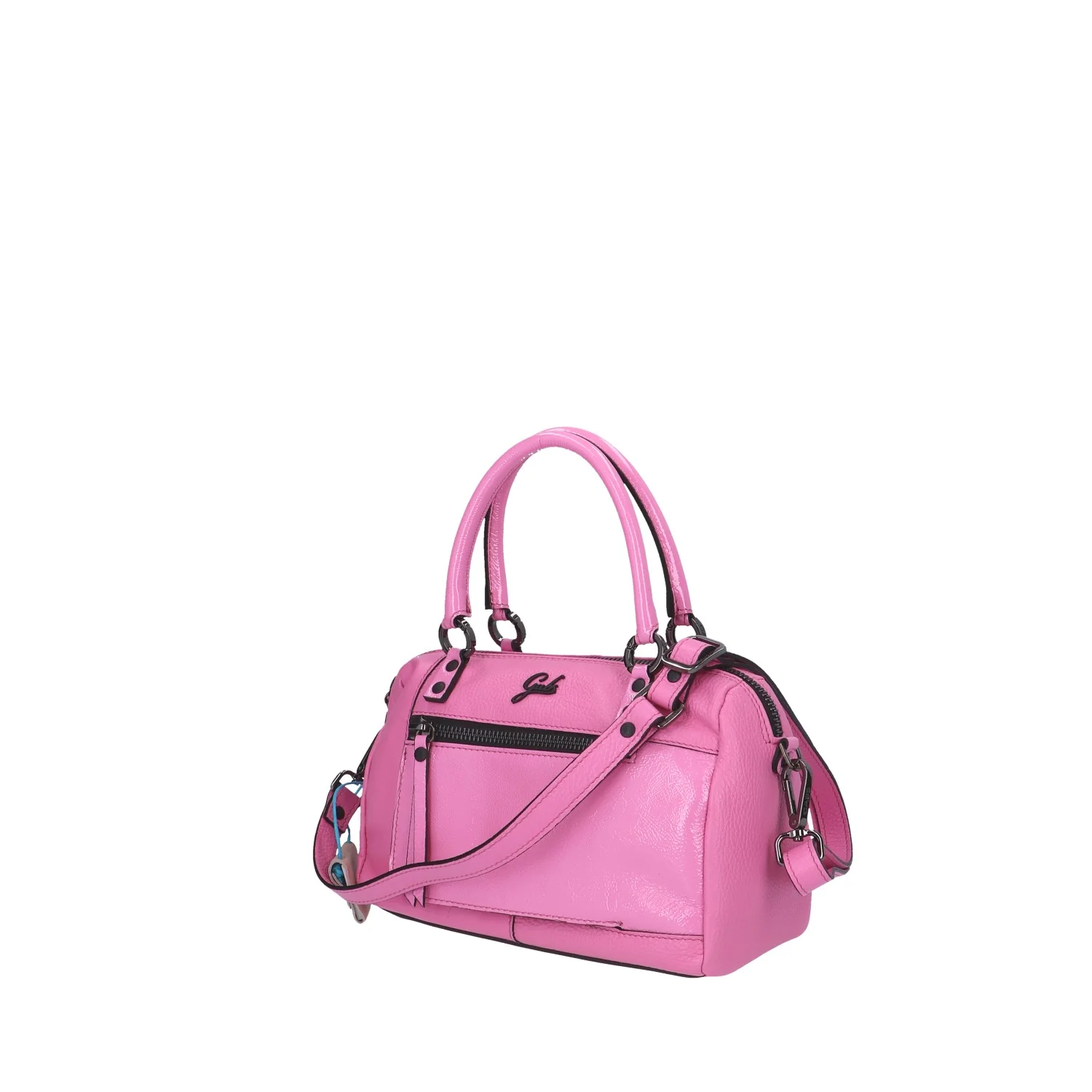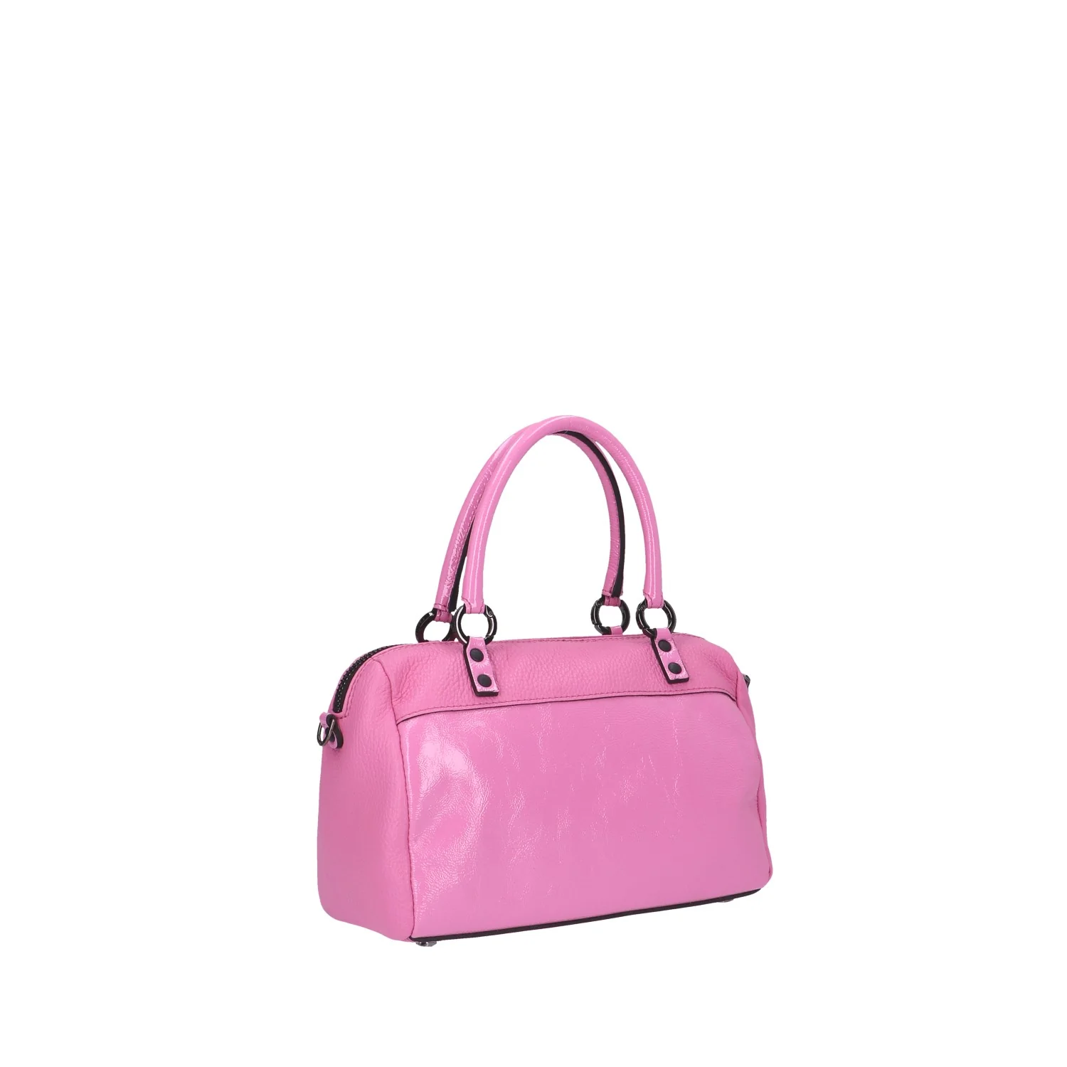 Modello: bauletto; Materiale: pelle/pelle lucida; Colore: flamingo; Interno: tessuto; Dettagli: 3 taschini interni (1 con zip); Accessori inclusi: tracolla, tasca frontale con zip, shopping in tessuto, block notes; Chiusura: zip; Dimensioni: 26x17x13 cm. Art.:G010010T1