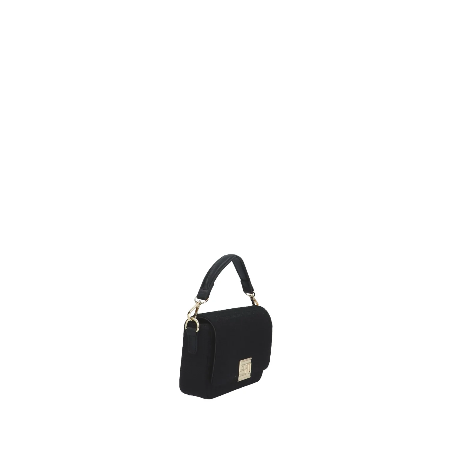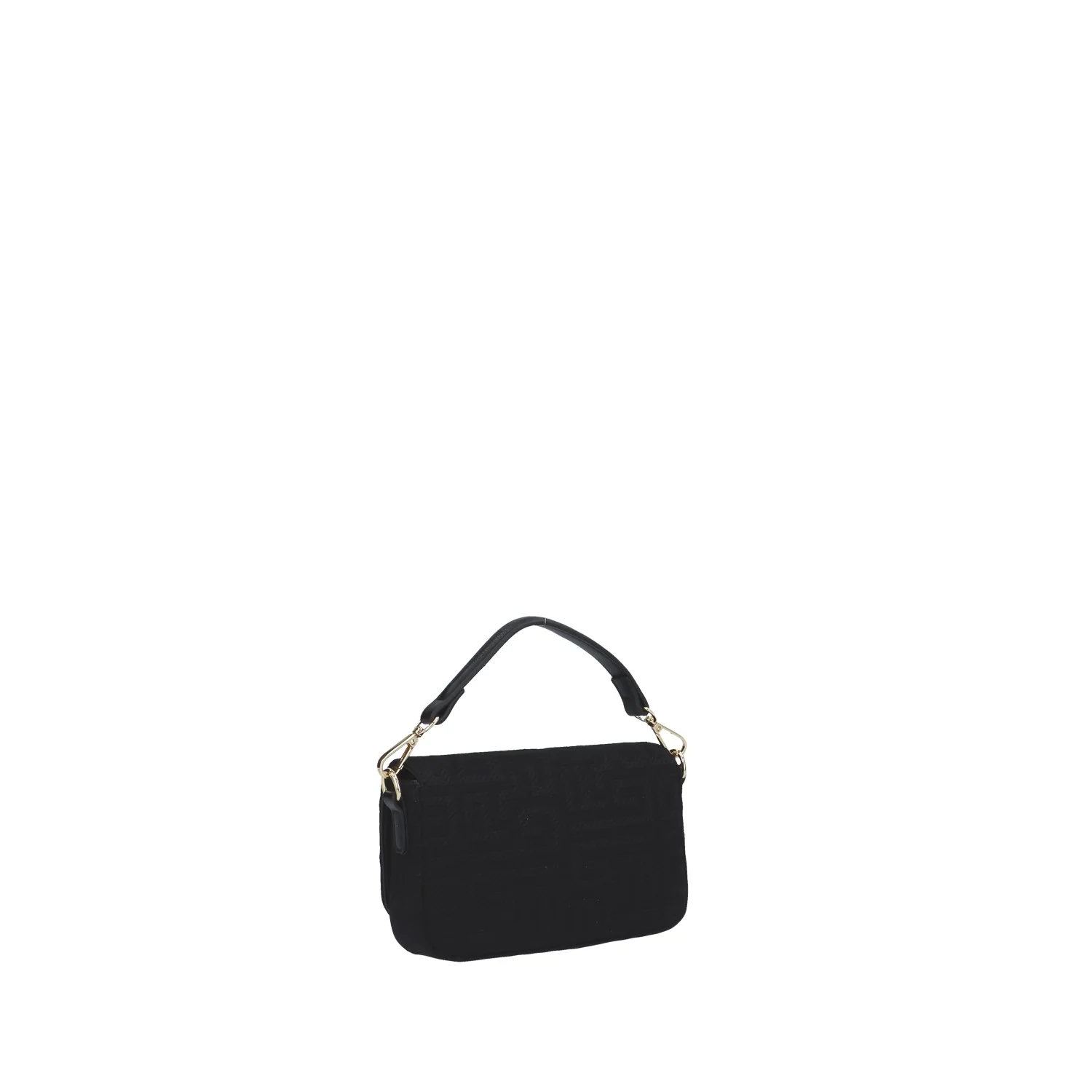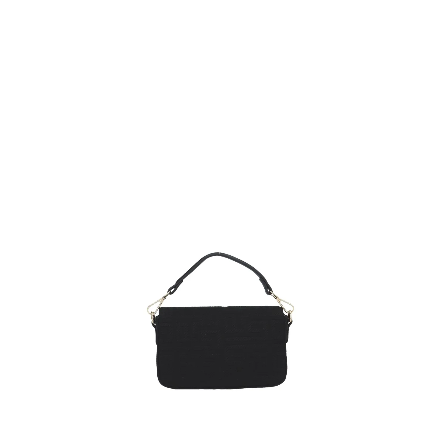 Modello: borsa a mano; Materiale: canvas; Colore: nero; Interno: tessuto; Dettagli: 2 taschini (1 con zip) e tracolla; Chiusura: patta e clip; Dimensioni: 19x13x4 cm; Art.:GAACW00205