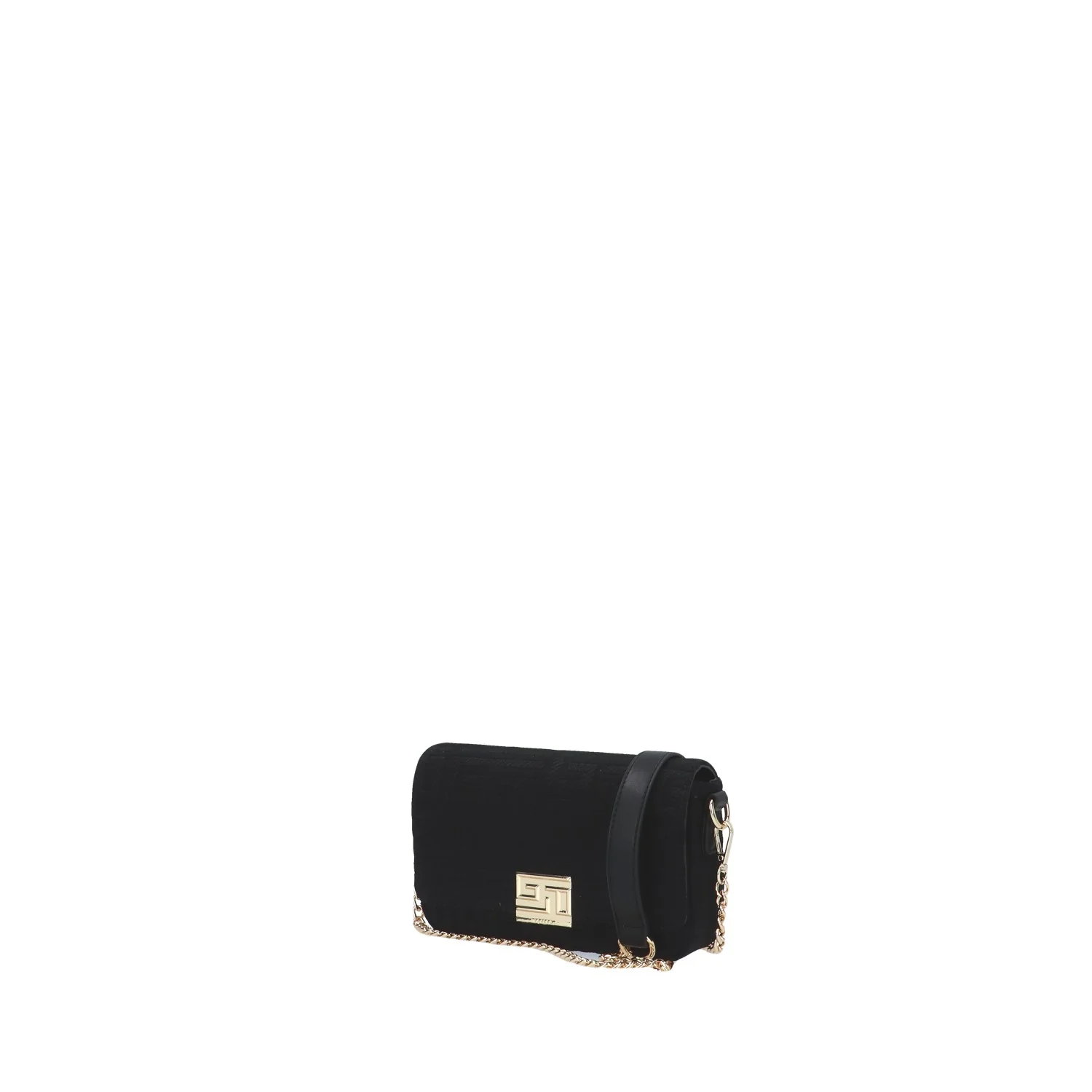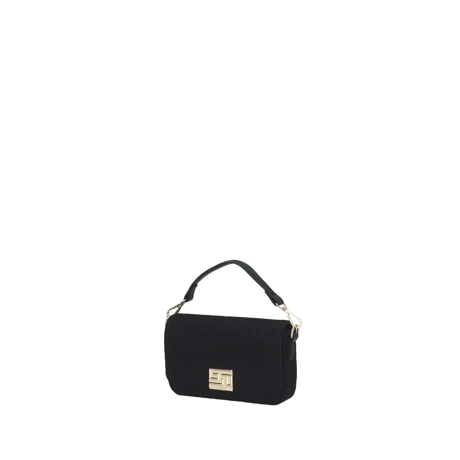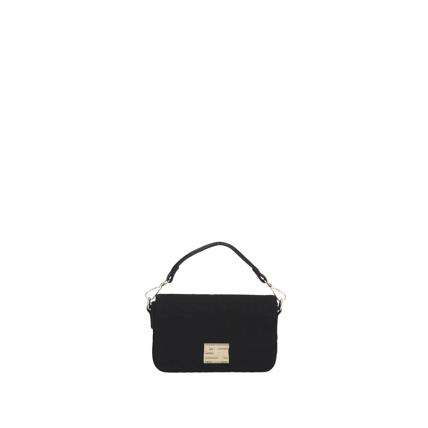 Modello: borsa a mano; Materiale: canvas; Colore: nero; Interno: tessuto; Dettagli: 2 taschini (1 con zip) e tracolla; Chiusura: patta e clip; Dimensioni: 19x13x4 cm; Art.:GAACW00205