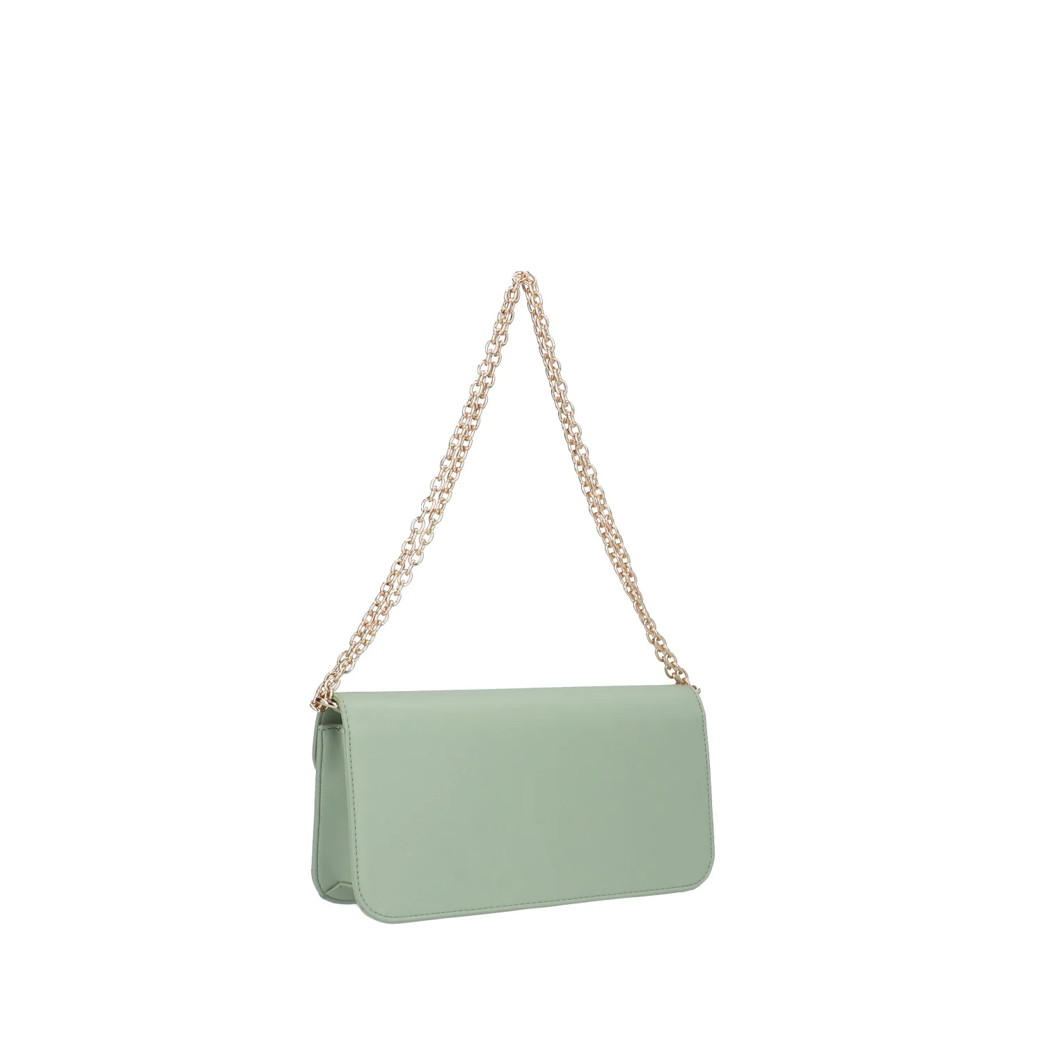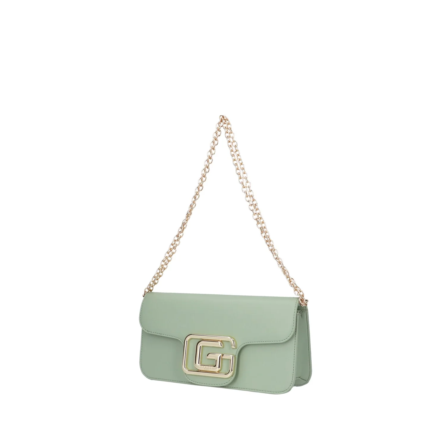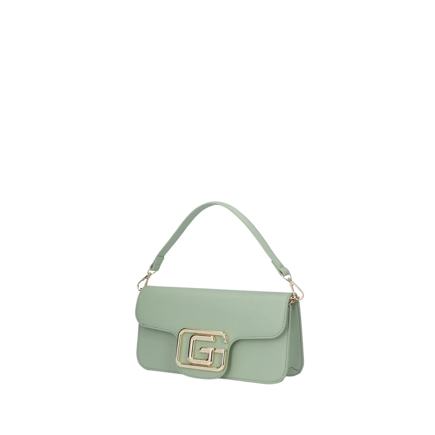 Modello: borsa a spalla; Materiale: ecopelle; Colore: verde salvia; Interno: tessuto; Dettagli: 2 taschini (1 con zip), spallaccio piรน corto removibile; Chiusura: patta e clip; Dimensioni: 27x13x7 cm; Art.:GAACW00186