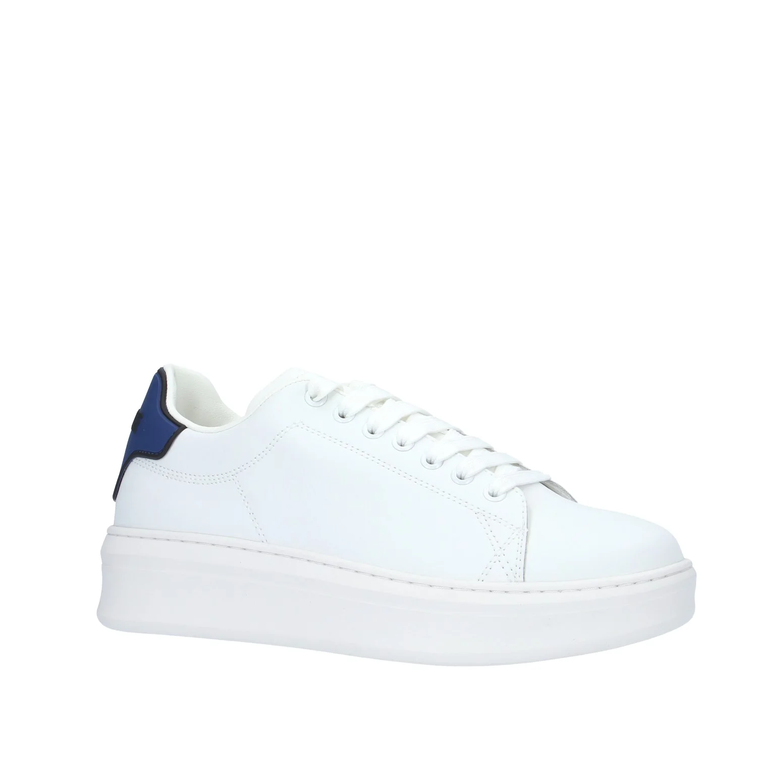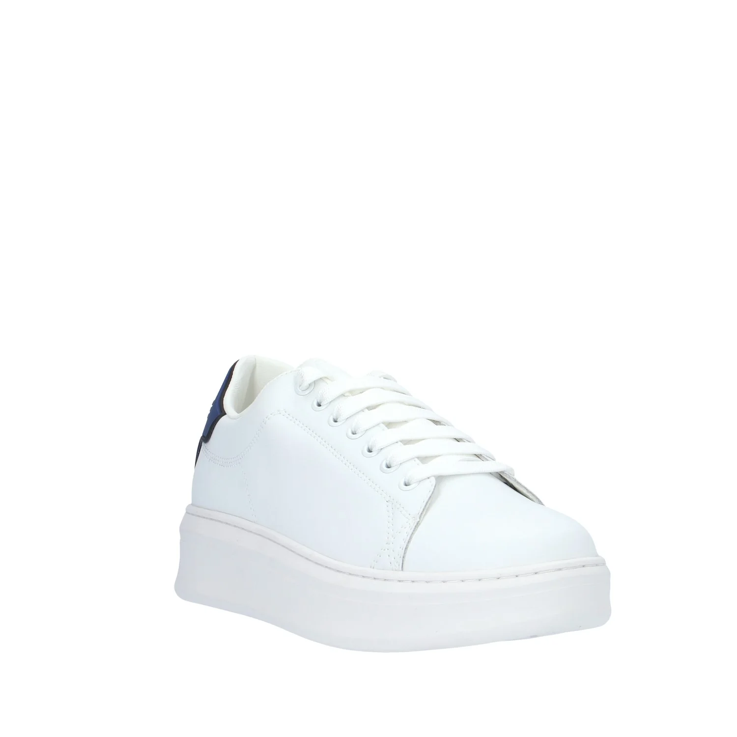 Modello: sneaker; Materiale tomaia: pelle/ecopelle; Colore: bianco/retro tallone blu; Interno: ecopelle; Fondo: gomma 4 cm; Chiusura: lacci (altri logati); Calzata: regolare.Descrizione riferita al numero 41.Il colore effettivo potrebbe variare leggermente a causa della risoluzione dello schermo del tuo dispositivo. Art.:GACAM00080