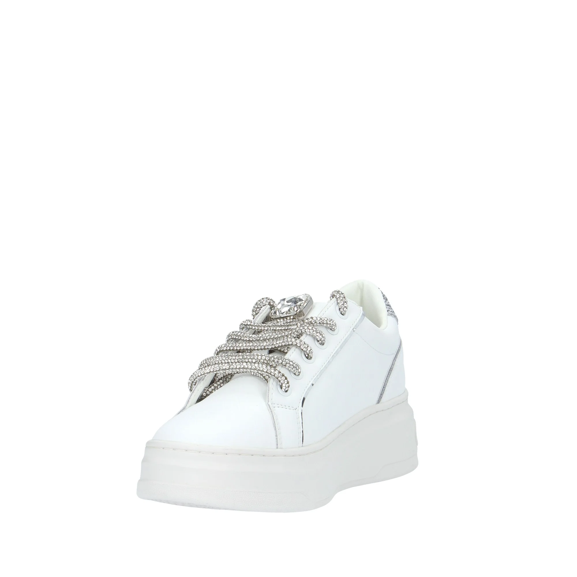 - Design moderno: la sneaker presenta un raffinato contrasto tra la base bianca e i dettagli glitterati argentati.