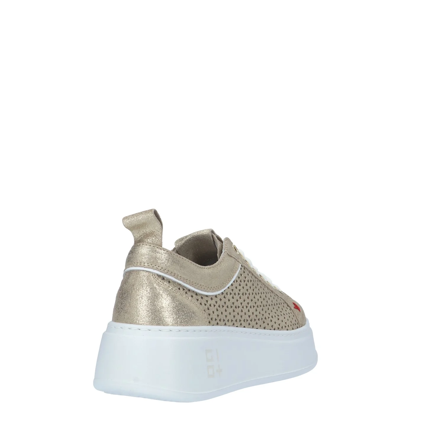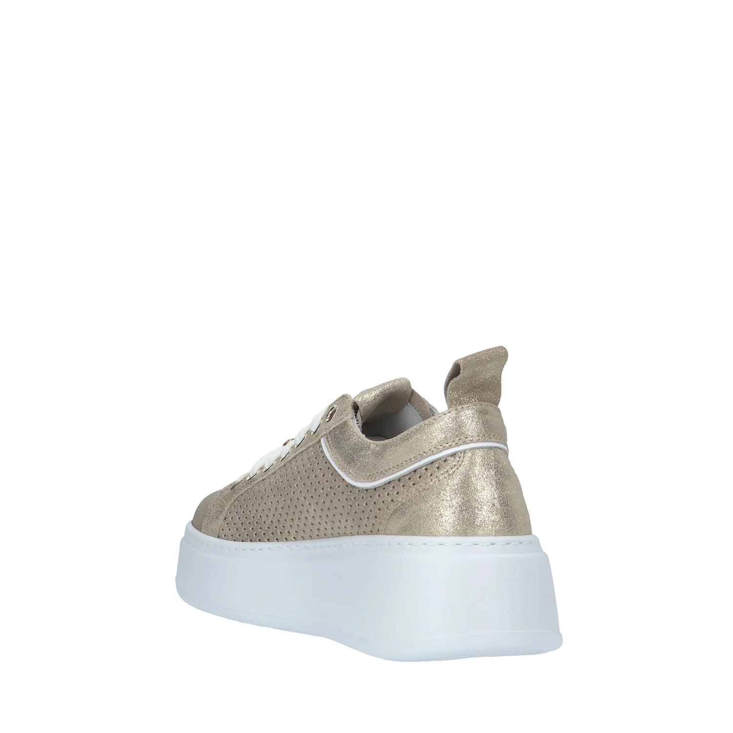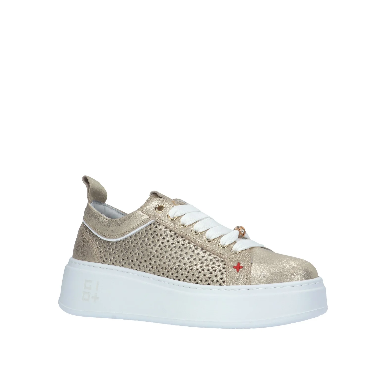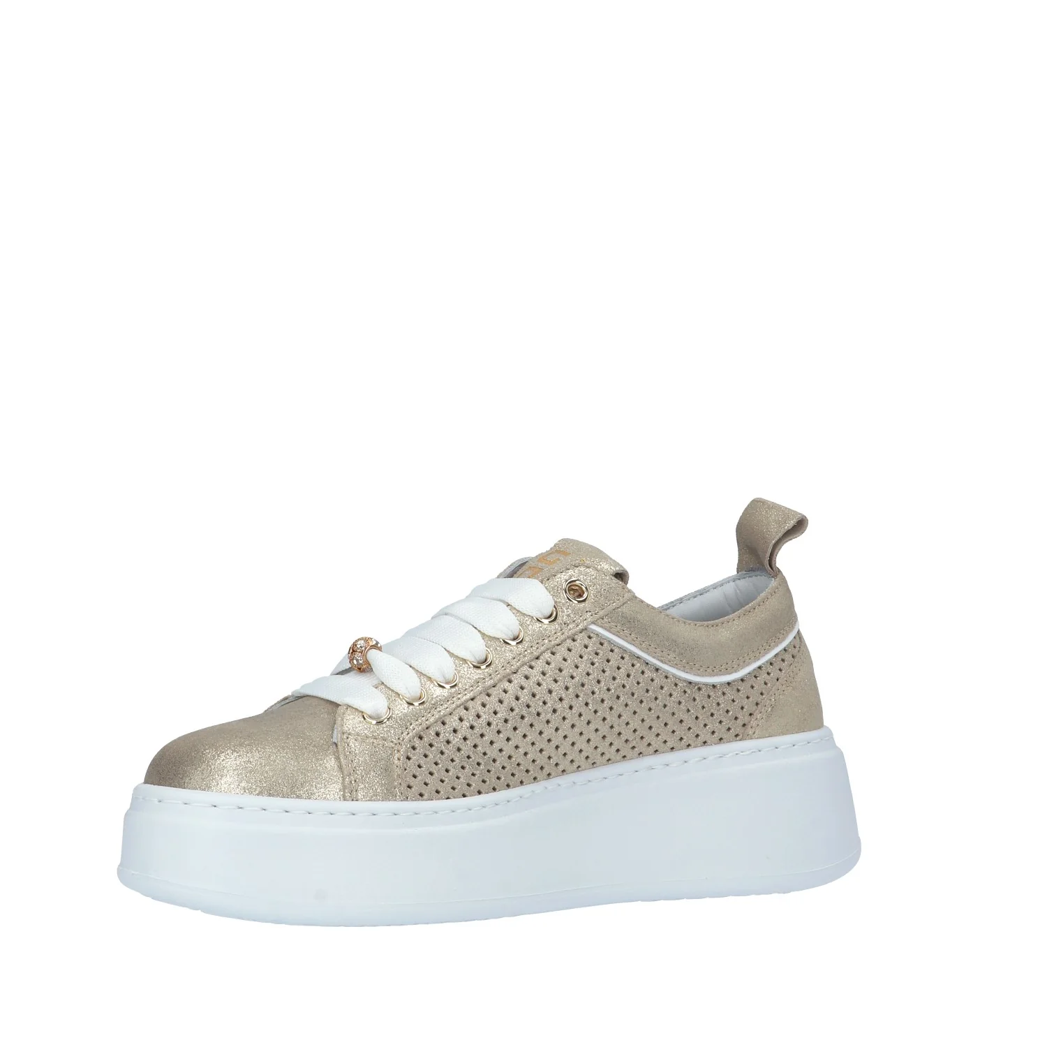 Modello: sneaker; Materiale tomaia: pelle laminata traforata; Colore: platino; Interno: pelle, soletto removibile in pelle; Fondo: gomma 5 cm; Chiusura: lacci con applicazioni gioiello a forma di pietre tonde con strass e abbellita da cavigliera di pietre celesti, removibile; Calzata: regolare; Descrizione riferita al numero 37. Art.:PIA156C