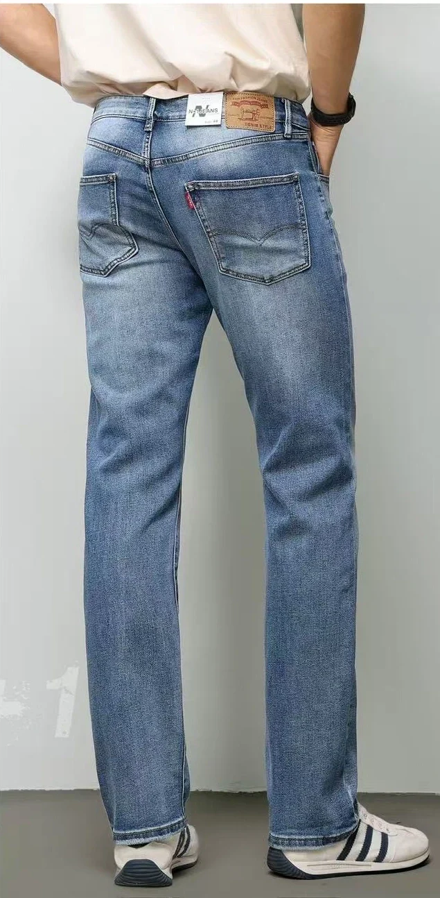 Realizzati in tessuto elasticizzato, questi jeans da uomo hanno un leggero tocco retrรฒ e una vestibilitร dritta per garantire comfort e stile.