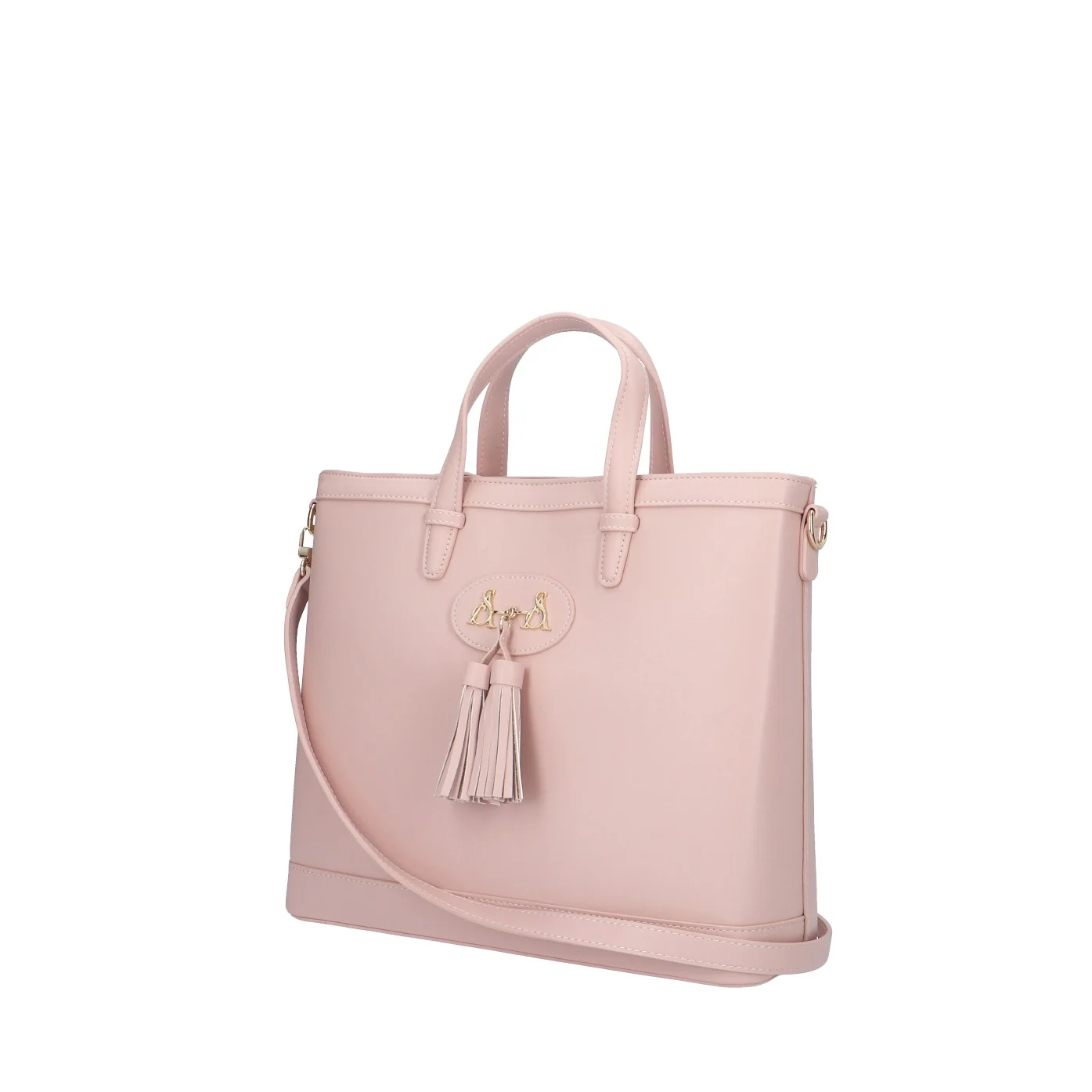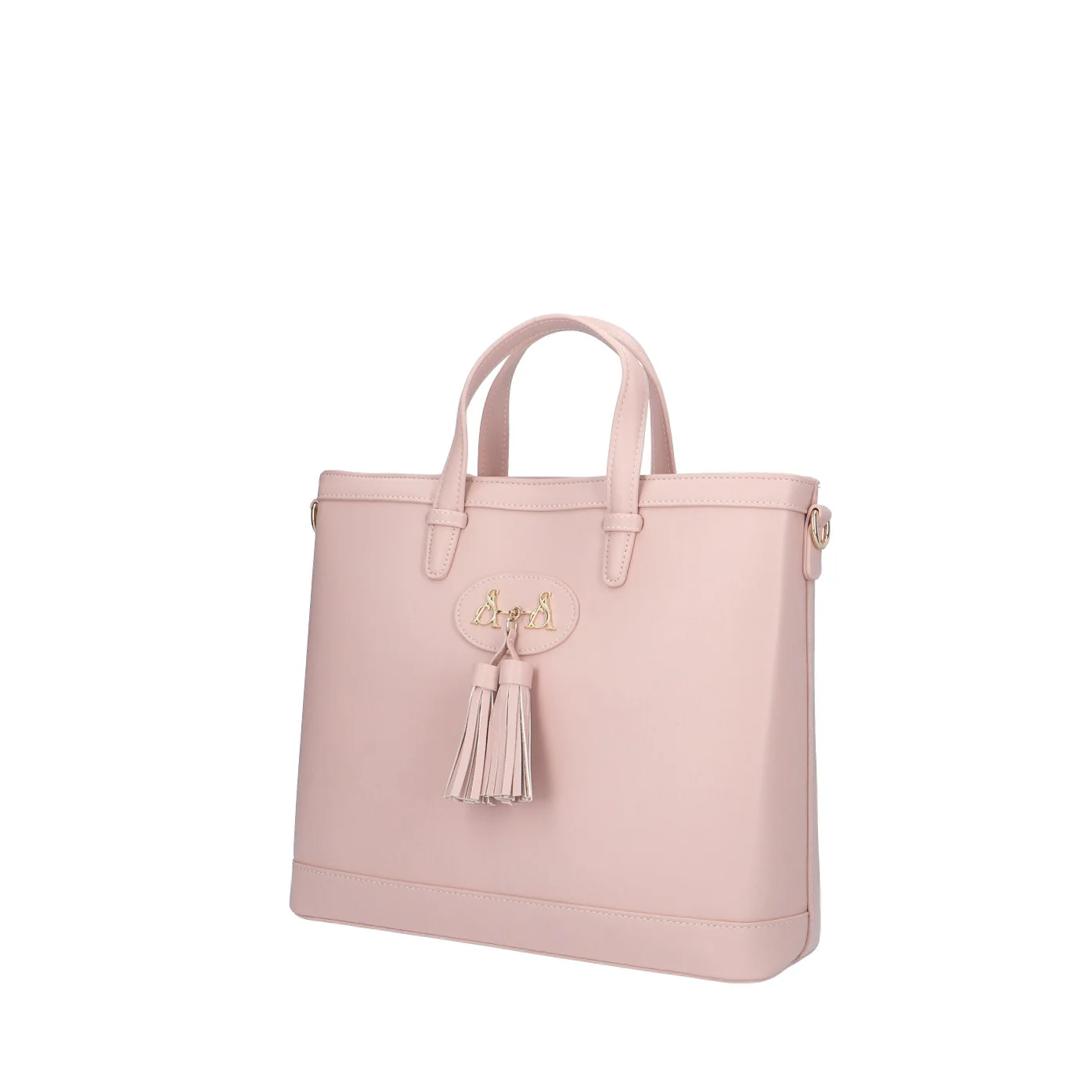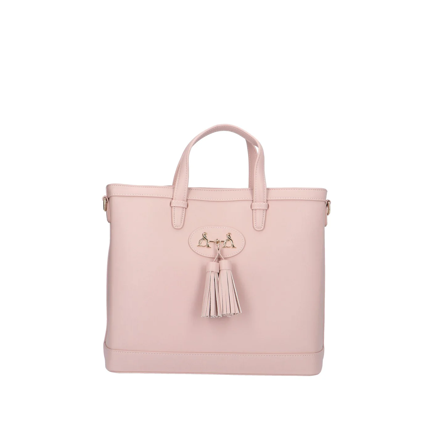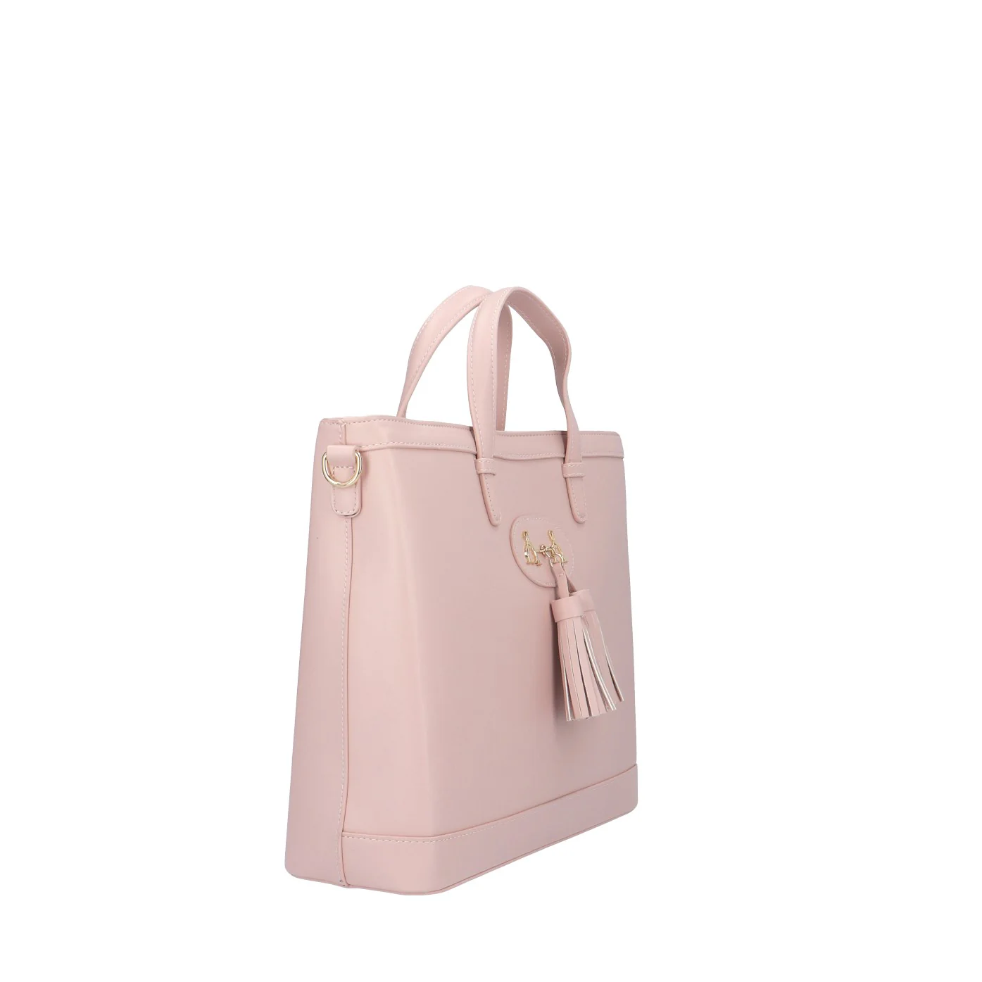 Modello: borsa a mano;Materiale: ecopelle;Colore: rosa fumo;Interno: tessuto;Dettagli: 3 taschini (1 con zip), tracolla, borchie e pietre;Chiusura: zip;Dimensioni: 34x30x11 cm.Art.:FIONA
