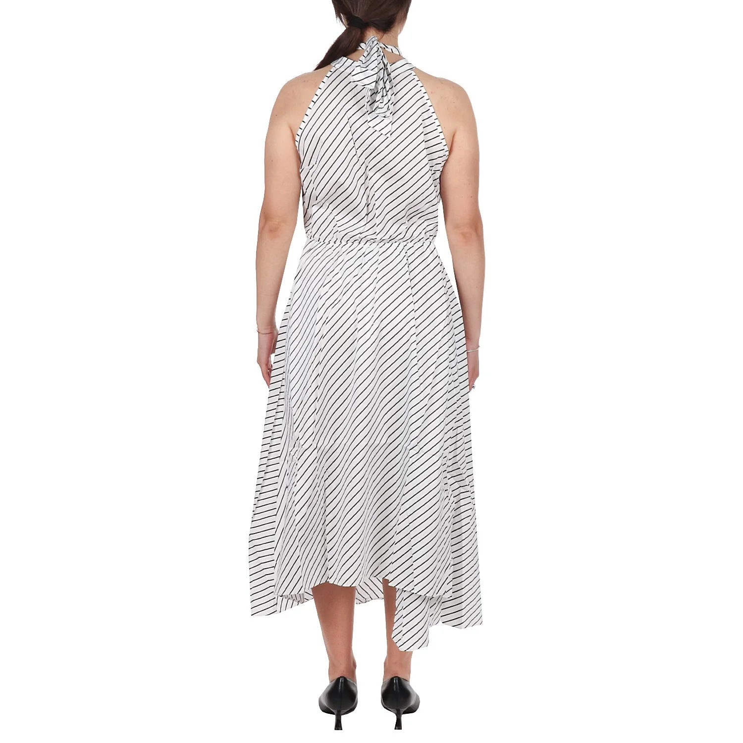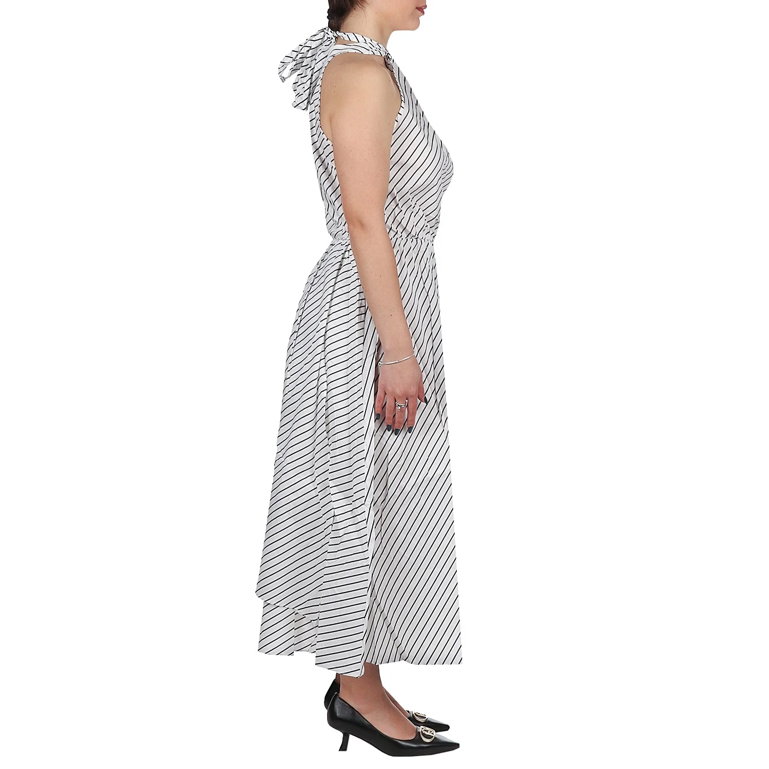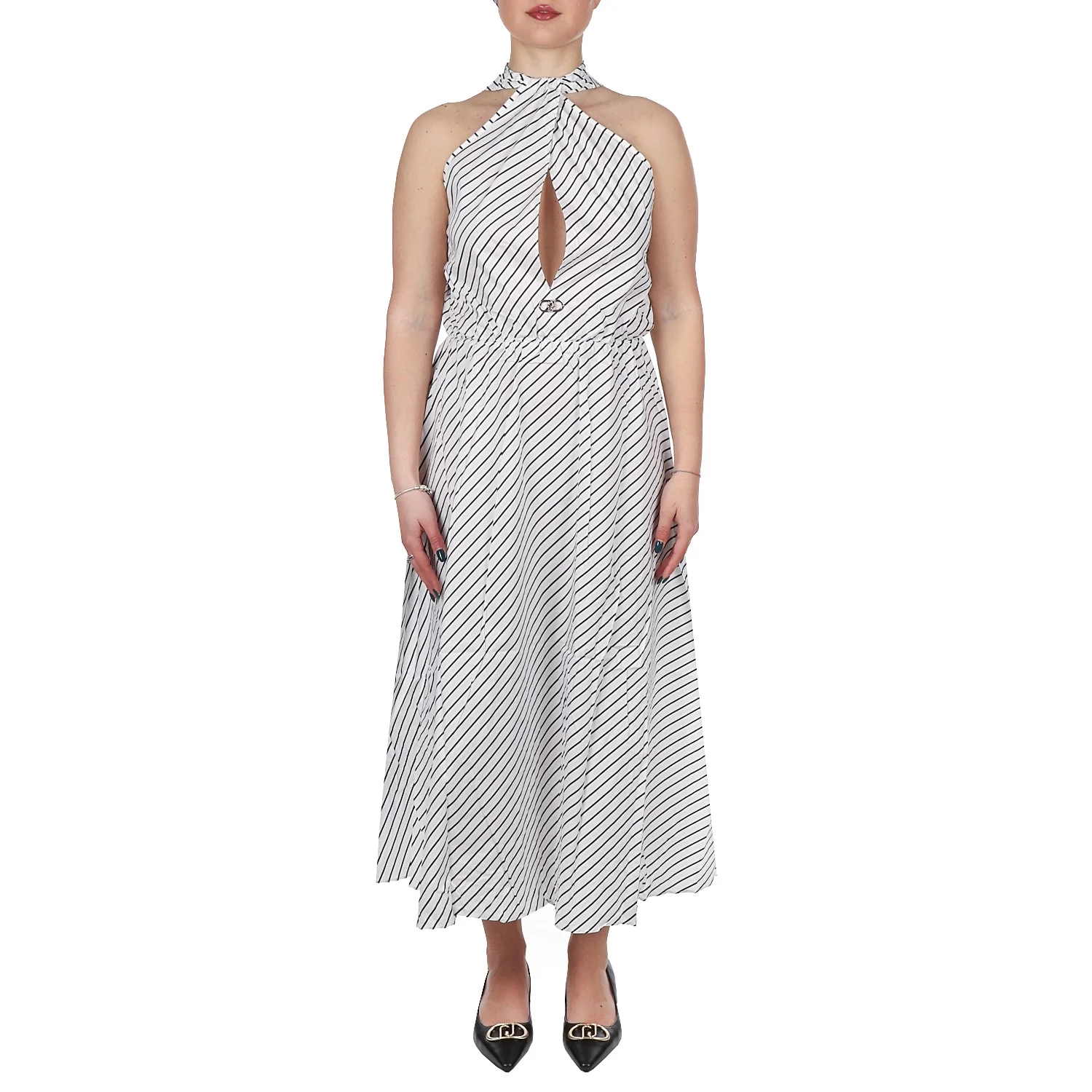 Modello: abito; Colore: bianco rigato nero; Dettagli: fiocco con scollo americana e dettaglio gioiello, due tasche; Composizione: 95% cotone, 5% elastan. Il colore effettivo potrebbe variare leggermente a causa della risoluzione dello schermo del tuo dispositivo. Art.:VA5081TS947