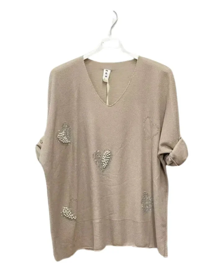 Maglia casual con dettagli a cuore in rilievo, dal design morbido e confortevole. Disponibile in una vasta gamma di colori, ideale per un look versatile e chic.