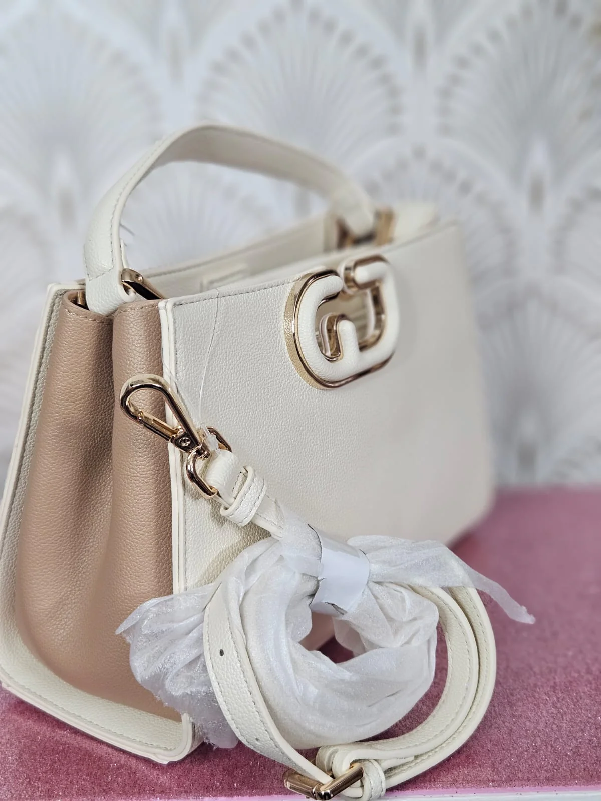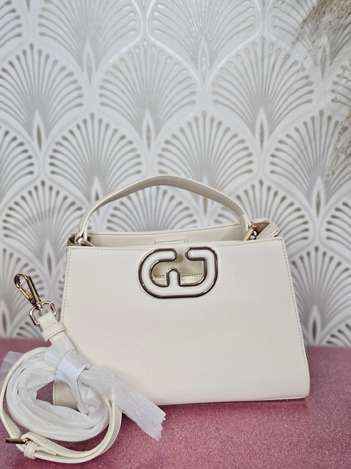 Scegli la borsa top handle in similpelle bottalata con logo in metallo rivestito e tracolla rimovibile. Per un tocco raffinato ai tuoi look. Tracolla regolabile e removibile lunghezza 120 cm.