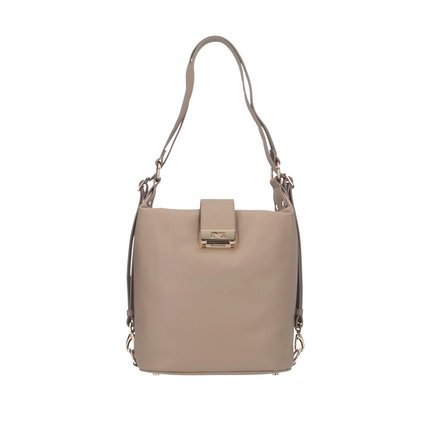 Modello: borsa a spalla; Materiale: pelle; Colore: tortora; Interno: tessuto; Dettagli: 3 taschini (1 con cerniera) e trasformabile in zainetto; Chiusura: zip e gancio; Dimensioni: 25x24x13 cm; Il colore effettivo potrebbe variare leggermente a causa della risoluzione dello schermo del tuo dispositivo. Art.:I443715D