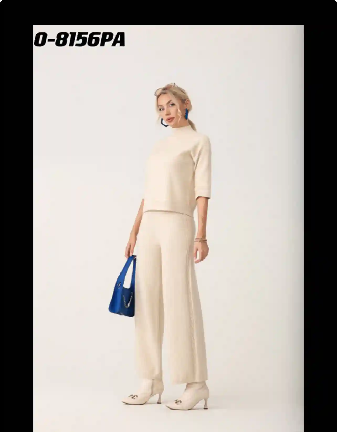 Pantalone maglia 50% viscosa 28% poliestere 22% poliammide Le foto sono tutte scattate in negozio. Potrebbe esserci differenza di colore.