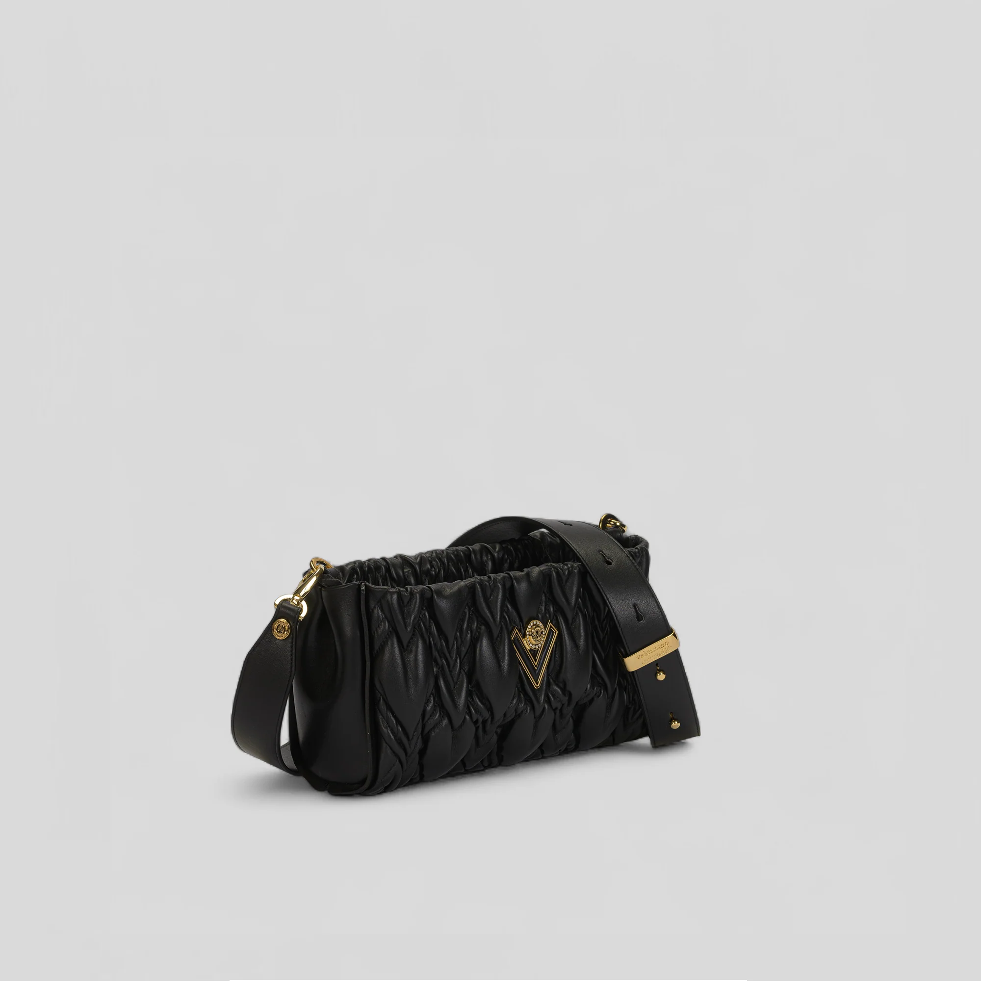 Pochette con ricamo matelassè a cuori. Esclusiva, elegante, ricercata, è una rappresentazione autentica di Made in Italy. Lavorazione JASTIN Pelle di vitello Chiusura superiore con zip Tracolla regolabile removibile Fodera in microfibra con finitura effetto pelle scamosciata Misure: 14cm x 25cm x 8cm Made in Italy