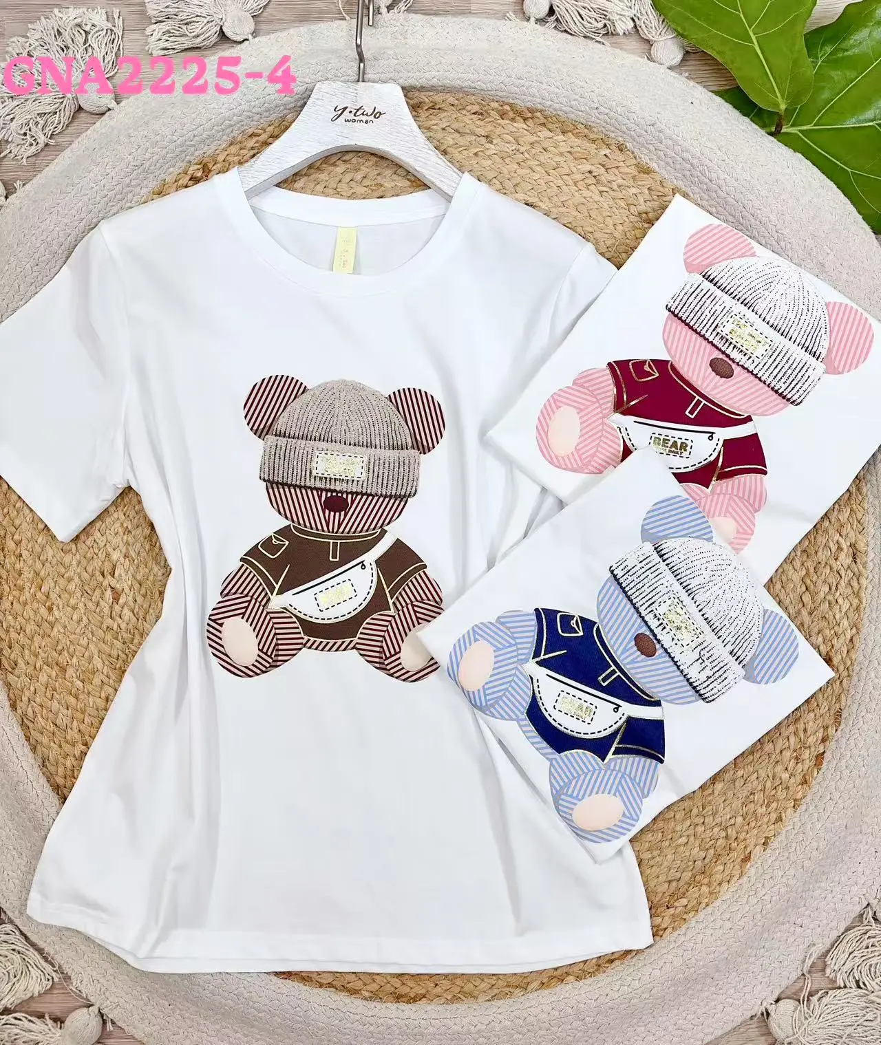 Questa maglietta bianca รจ adorabile! Stampati con un motivo che raffigura un orsetto che indossa un berretto lavorato a maglia e indossa abiti di colori diversi, gli elementi a righe aggiungono allegria. Lo stile รจ semplice e il tessuto รจ comodo, rendendolo adatto all’abbigliamento casual quotidiano. Che sia abbinato a jeans o a una gonna corta, puรฒ mostrare uno stile giocoso.