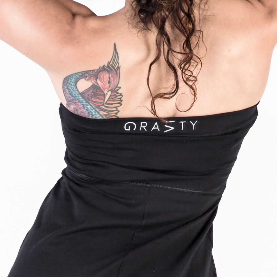 Vestito in cotone bi-elastico smanicato corto anteriormente e lungo posteriormente. 90% Cotone 10% Elastan TABELLA TAGLIE ASSISTENZA