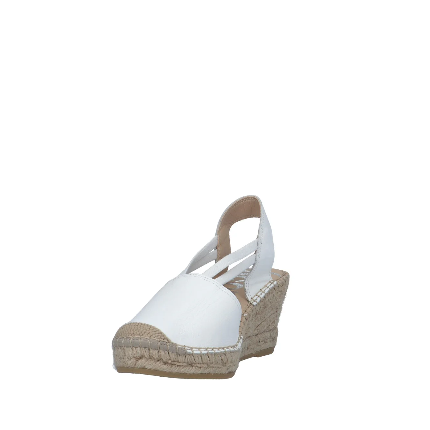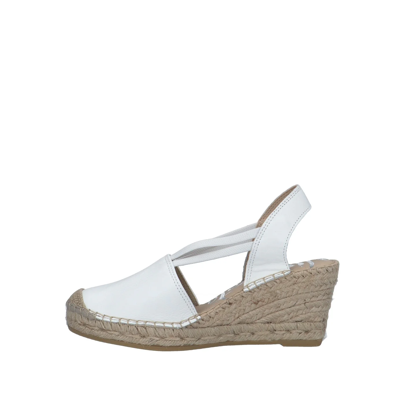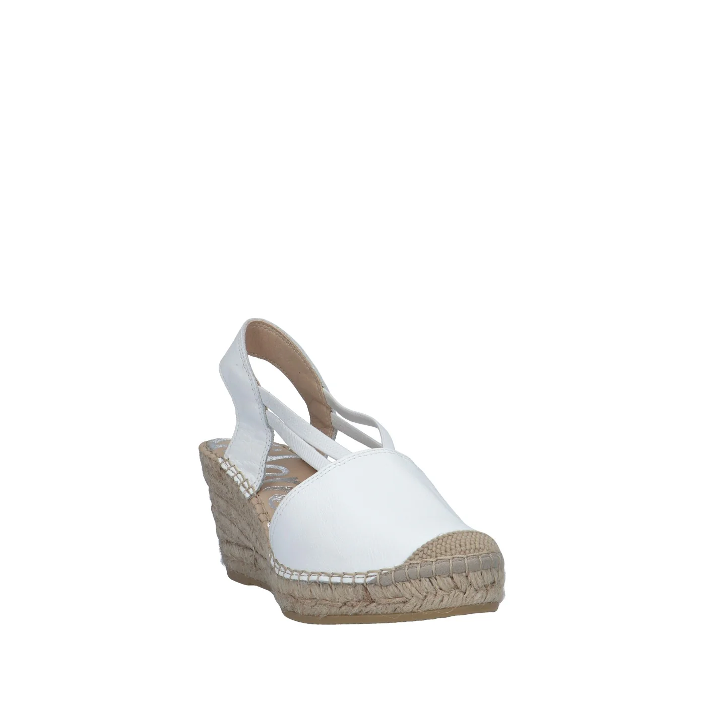 Modello: espadrillas;Materiale tomaia: nappa;Colore: bianco;Interno: tessuto;Fondo: zeppa in corda 7 cm;Chiusura: elastici;Calzata: regolare;Descrizione riferita al numero 37.Art.:05500