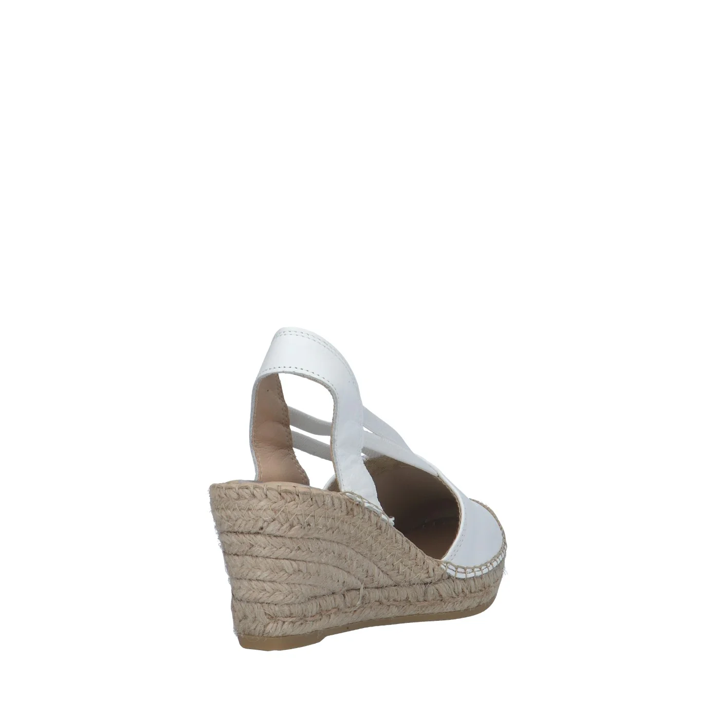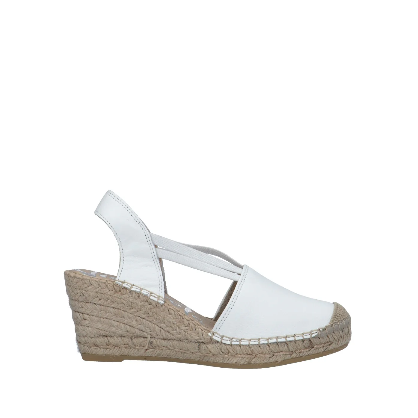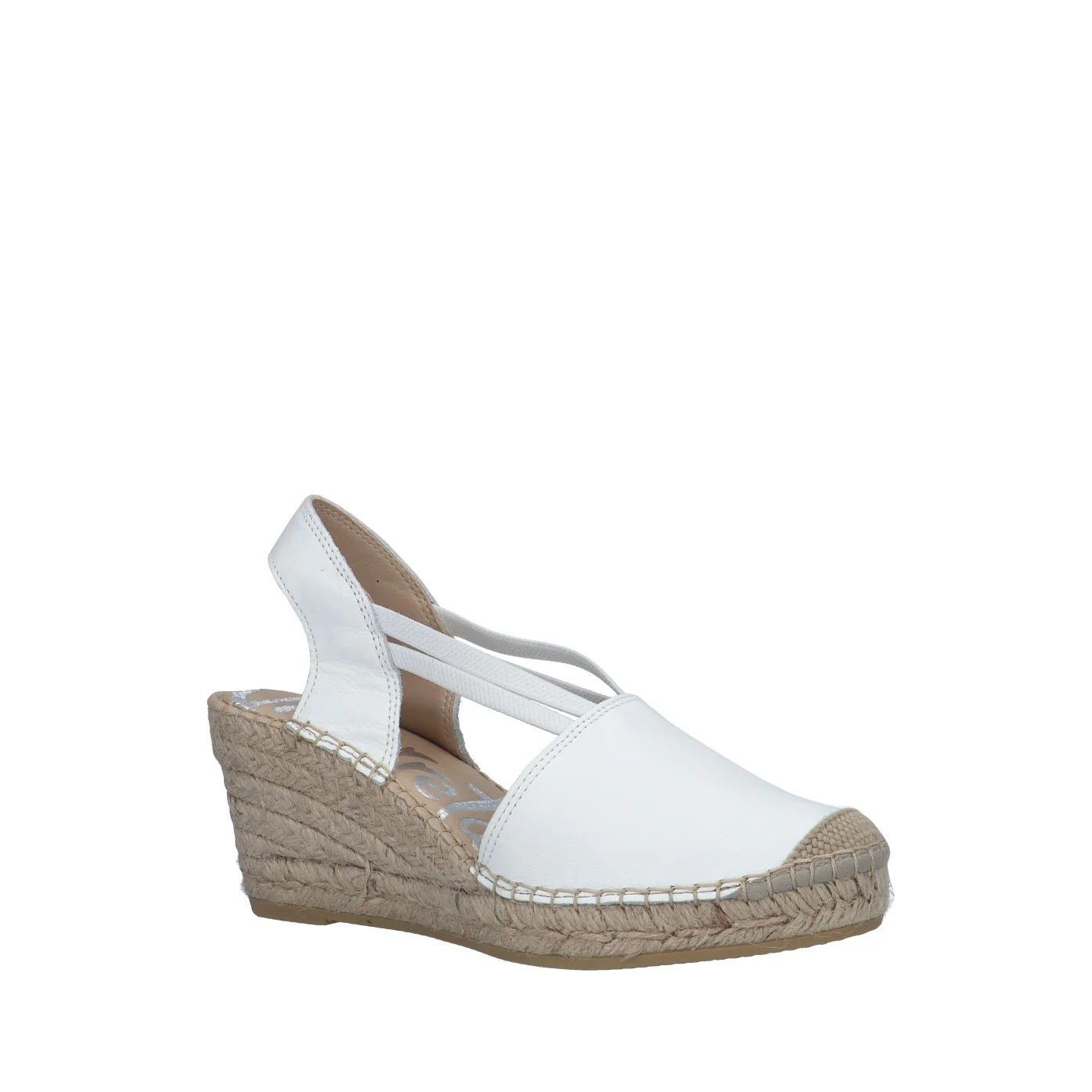 Modello: espadrillas;Materiale tomaia: nappa;Colore: bianco;Interno: tessuto;Fondo: zeppa in corda 7 cm;Chiusura: elastici;Calzata: regolare;Descrizione riferita al numero 37.Art.:05500