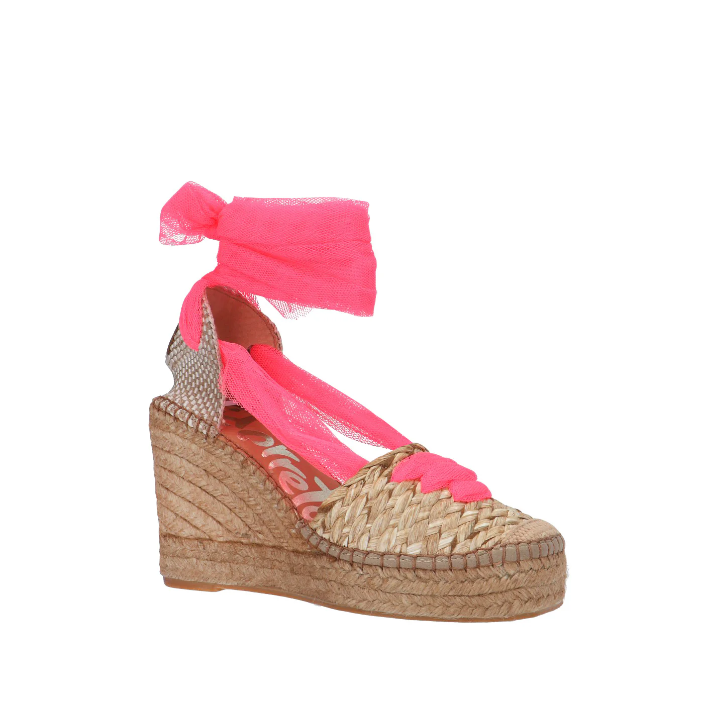 Modello: espadrillas; Materiale tomaia: rafia/tulle; Colore: fucsia; Interno: tessuto; Fondo: zeppa in juta 10 cm; Chiusura: lacci in tulle fuxia; Calzata: regolare; Descrizione riferita al numero 37. Art.:82200