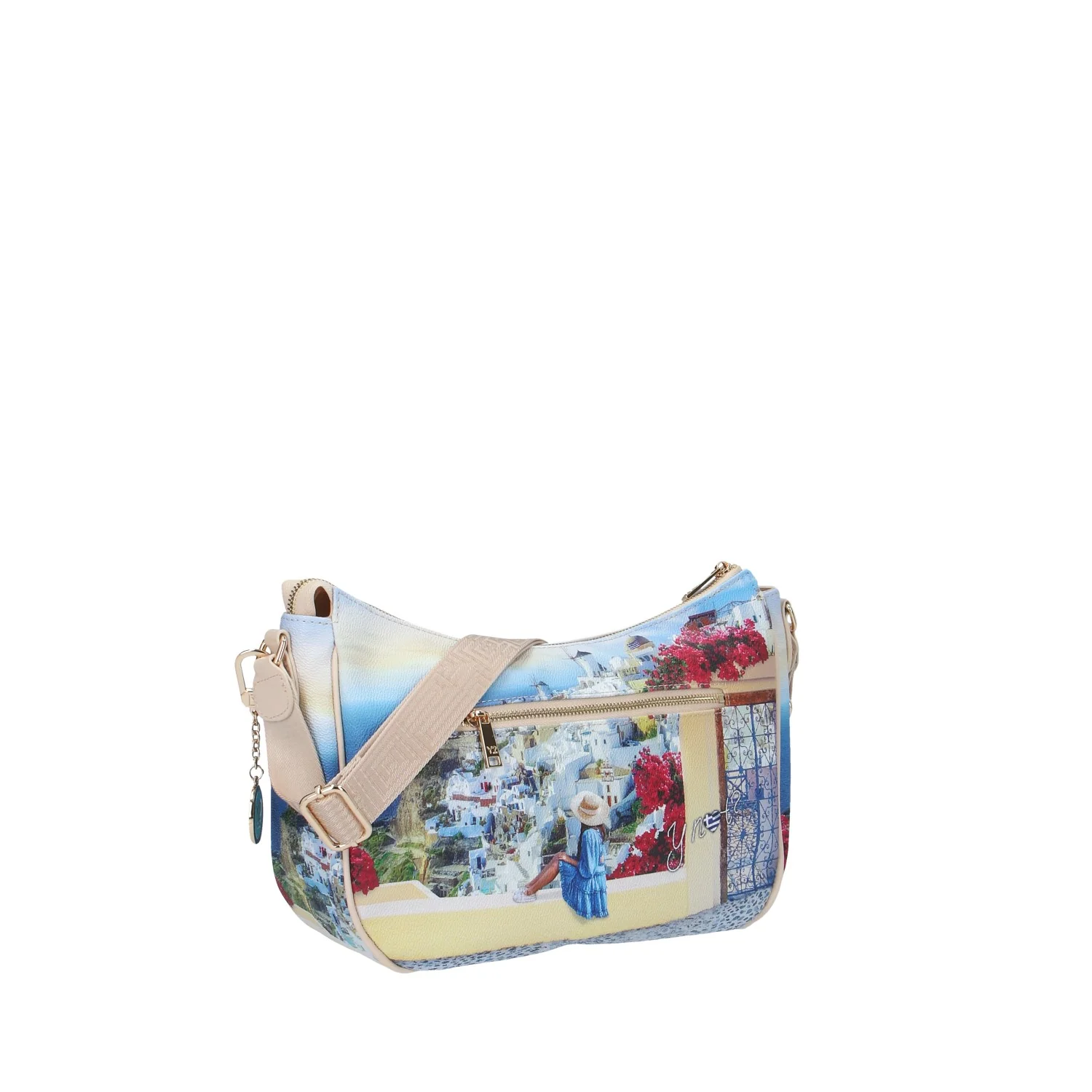 Modello: borsa a spalla; Materiale: ecopelle; Colore: greek summer; Interno: tessuto; Dettagli: 3 taschini (1 con zip), tasca sul retro con cerniera e portachiavi; Chiusura: zip; Dimensioni: 31x23x11 cm; Il colore effettivo potrebbe variare leggermente a causa della risoluzione dello schermo del tuo dispositivo. Art.:YES-628S5