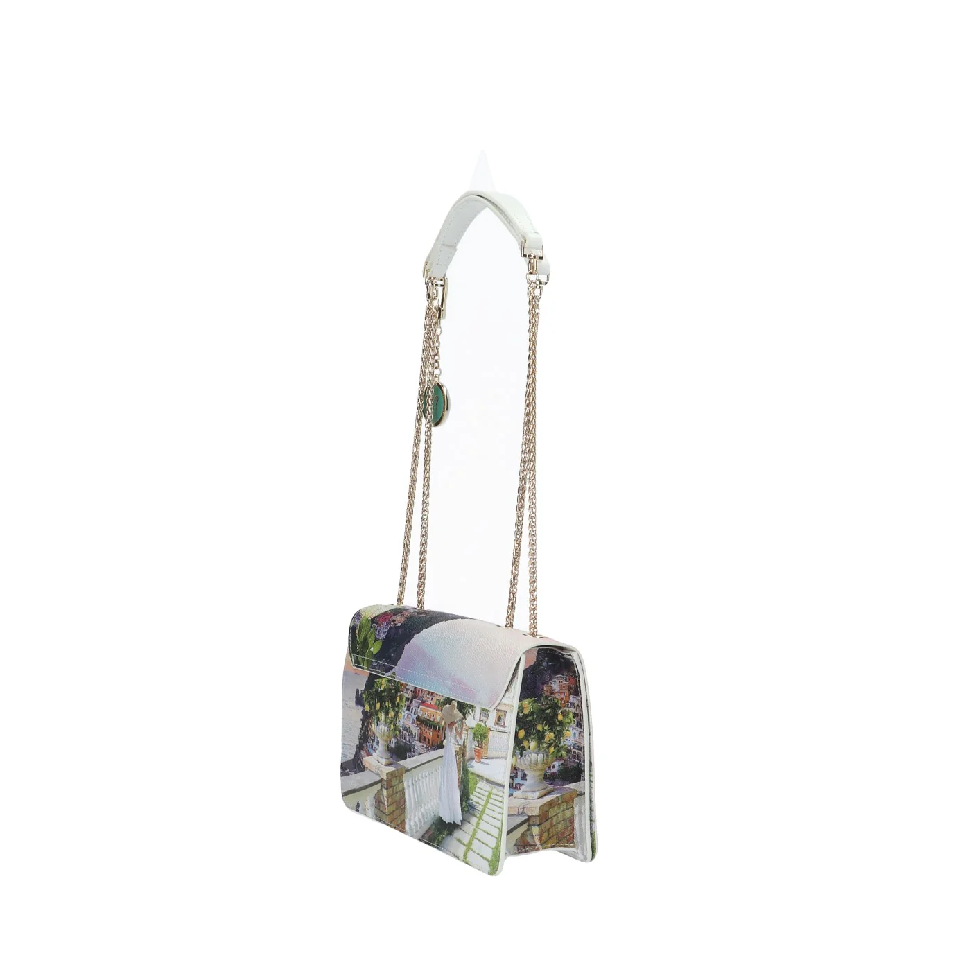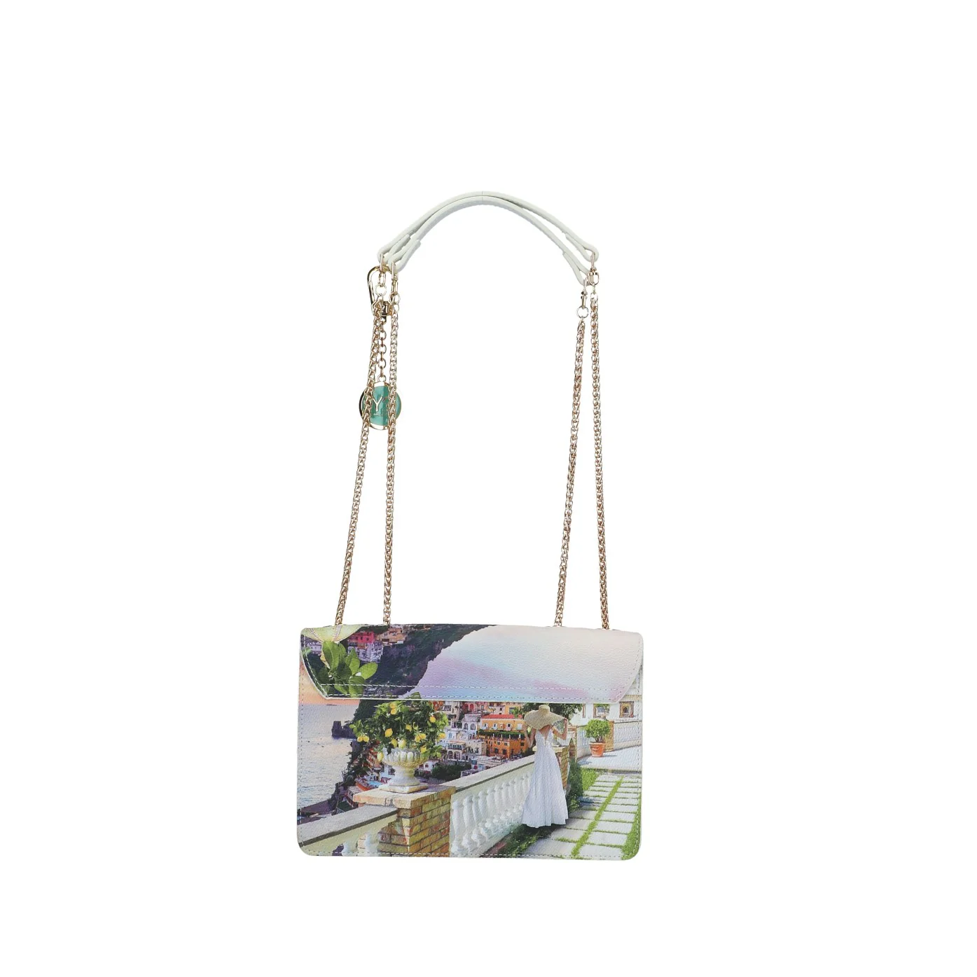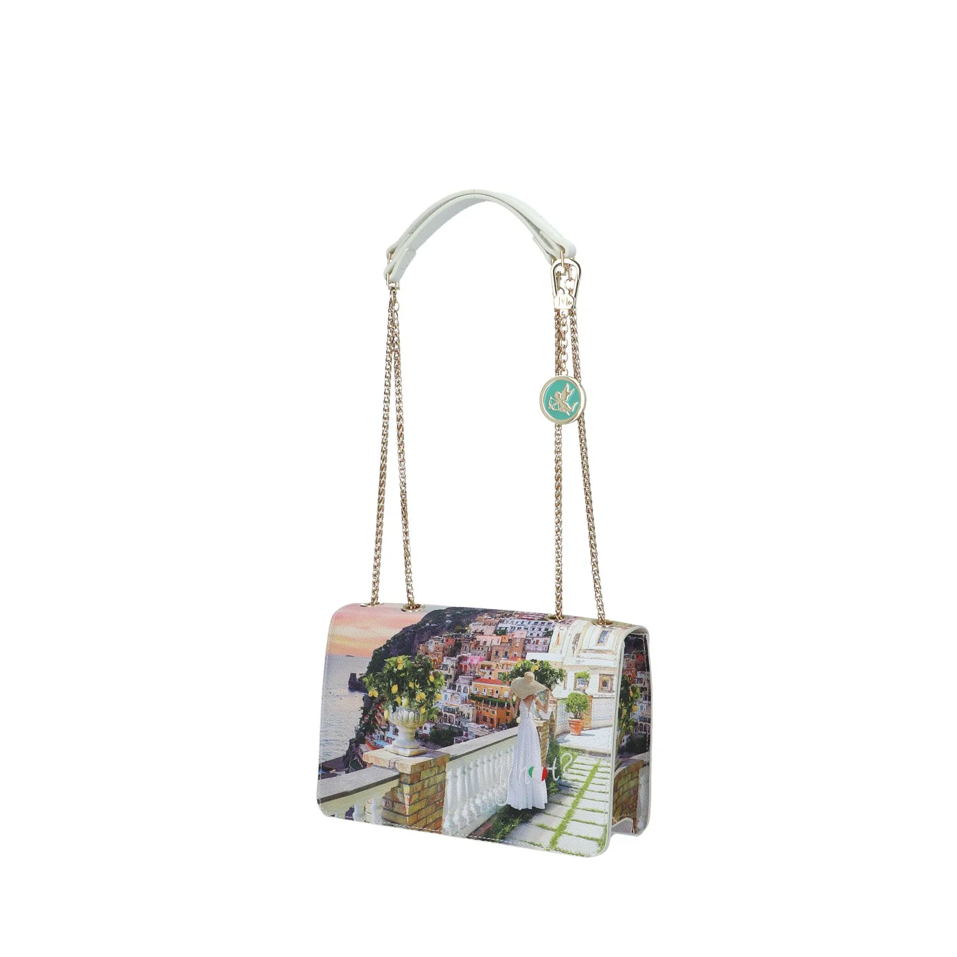 Modello: borsa a spalla; Materiale: ecopelle; Colore: romantic coast; Interno: tessuto; Dettagli: due taschini (1 con zip); Chiusura: patta e clip; Dimensioni: 24x14x7 cm; Art.:YES-471S4