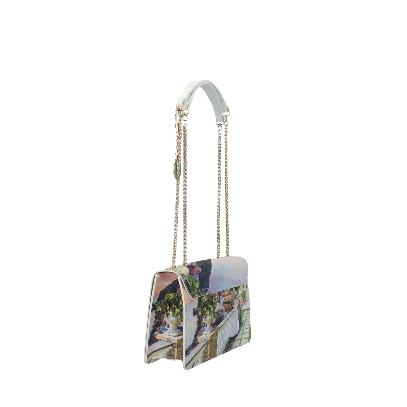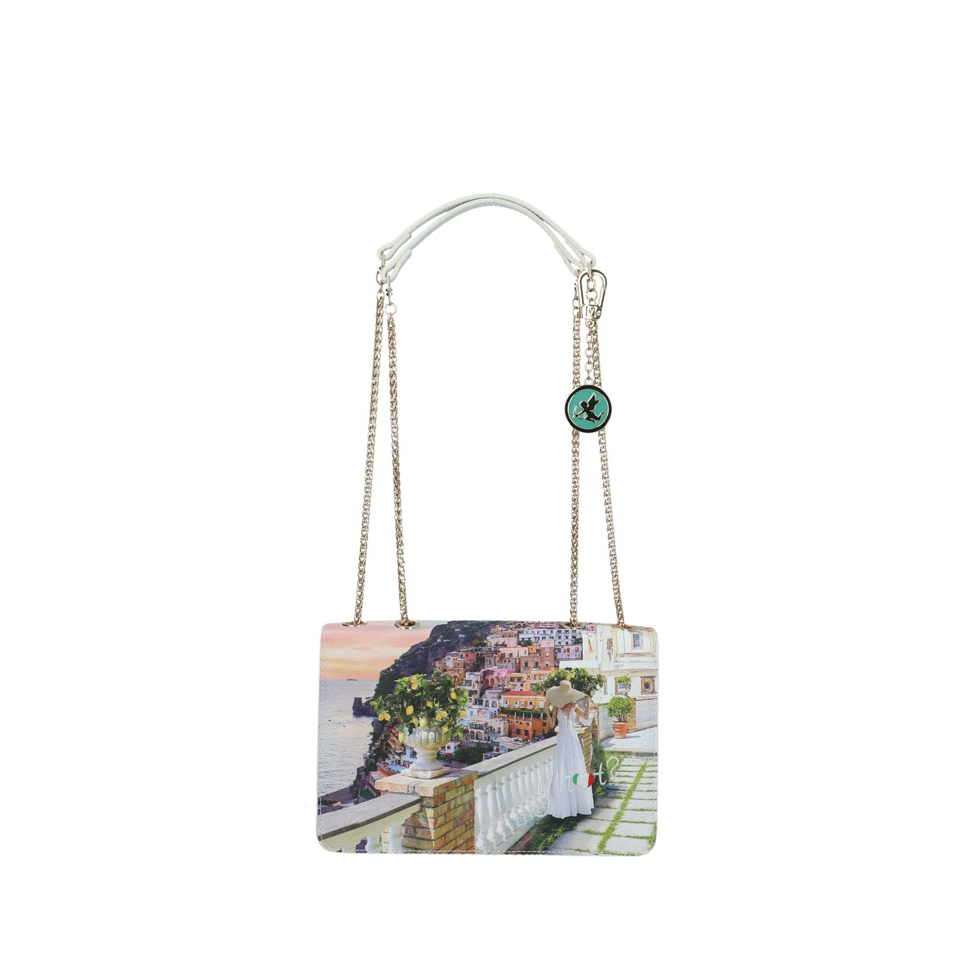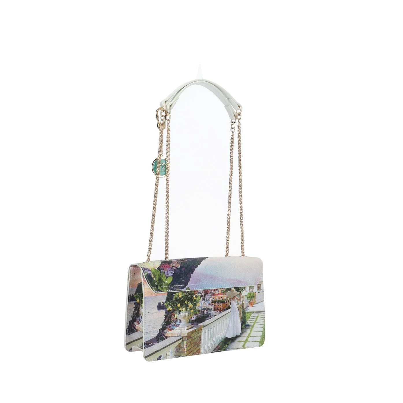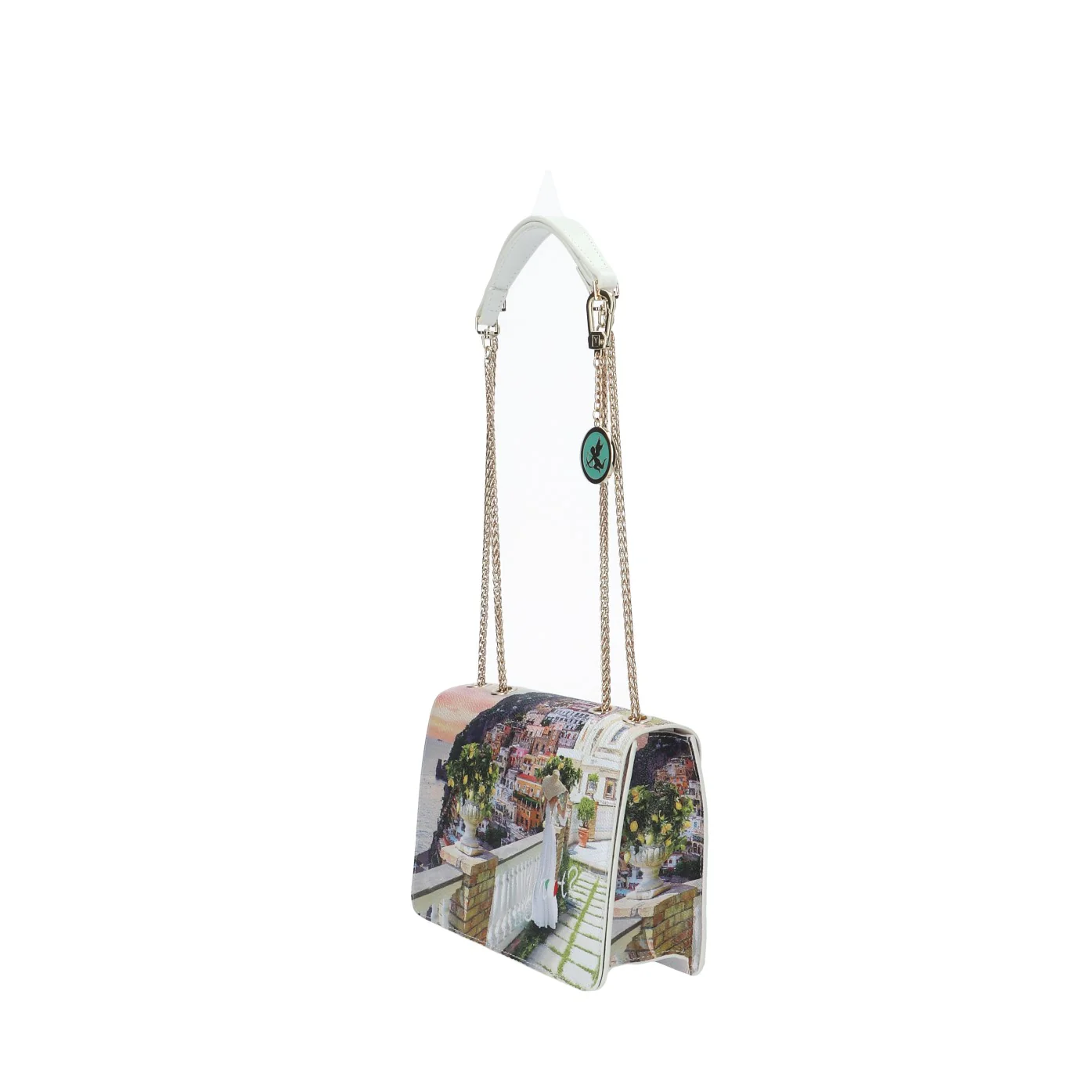 Modello: borsa a spalla; Materiale: ecopelle; Colore: romantic coast; Interno: tessuto; Dettagli: due taschini (1 con zip); Chiusura: patta e clip; Dimensioni: 24x14x7 cm; Art.:YES-471S4